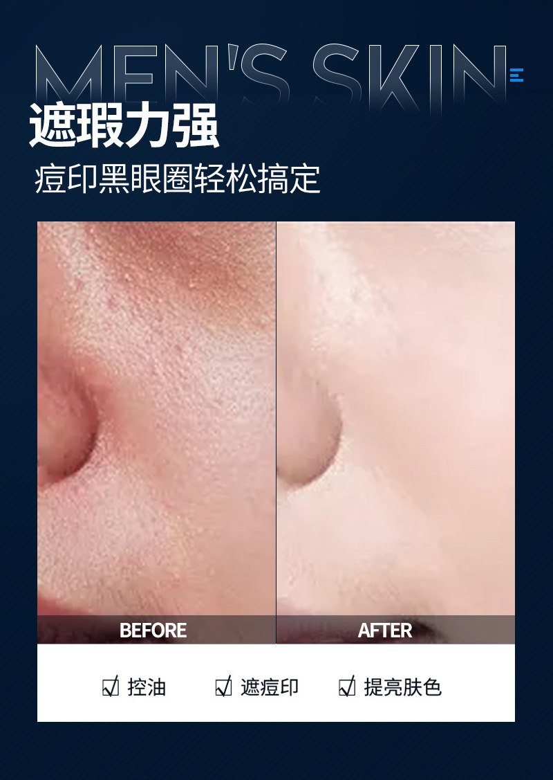 Baoweiquan Men's No-Makeup Cream, Lightweight Oil Control, Long-Lasting Bb Cream, Natural and Non-Whitening, Special Concealer for Lazy Men