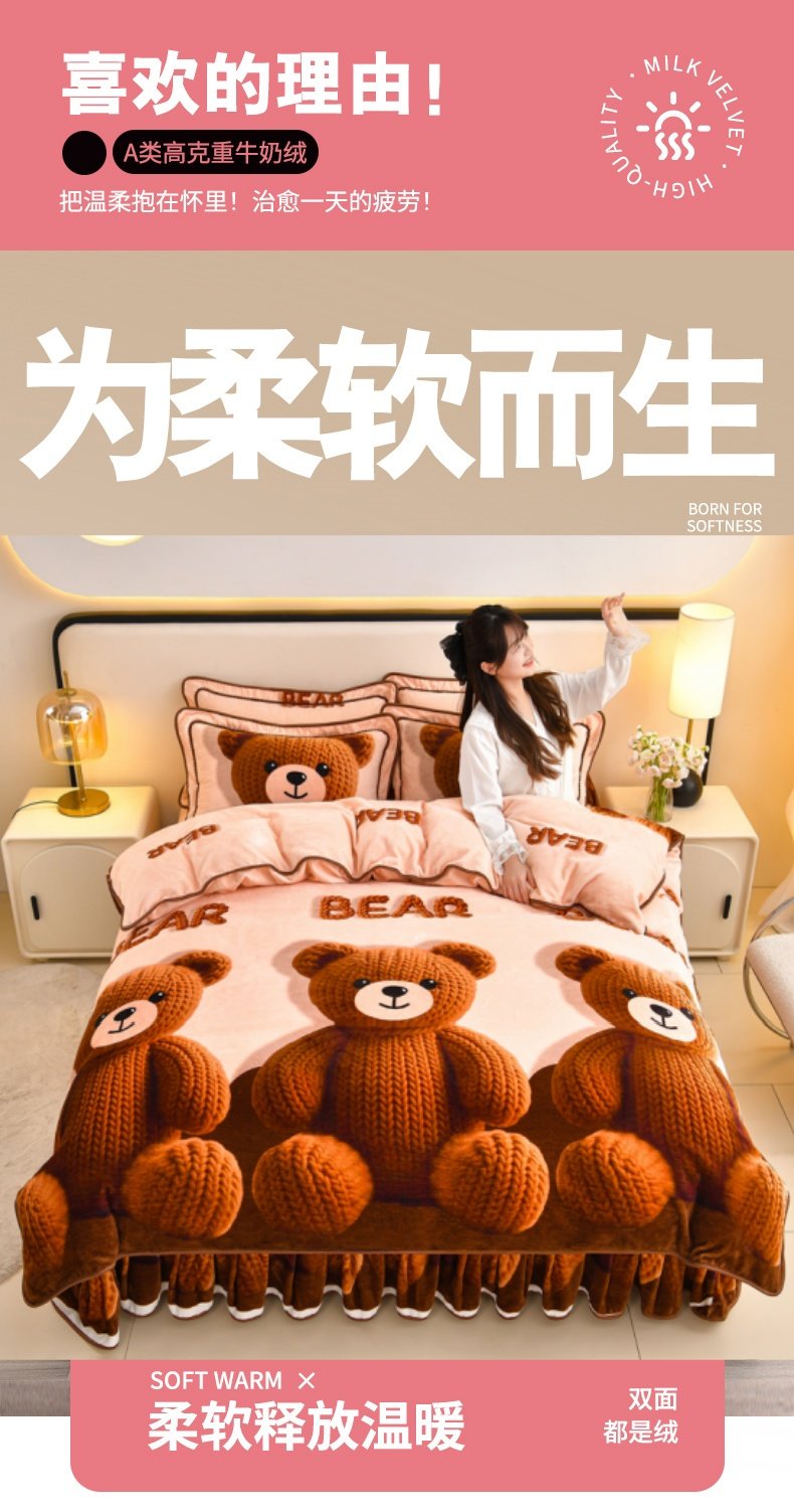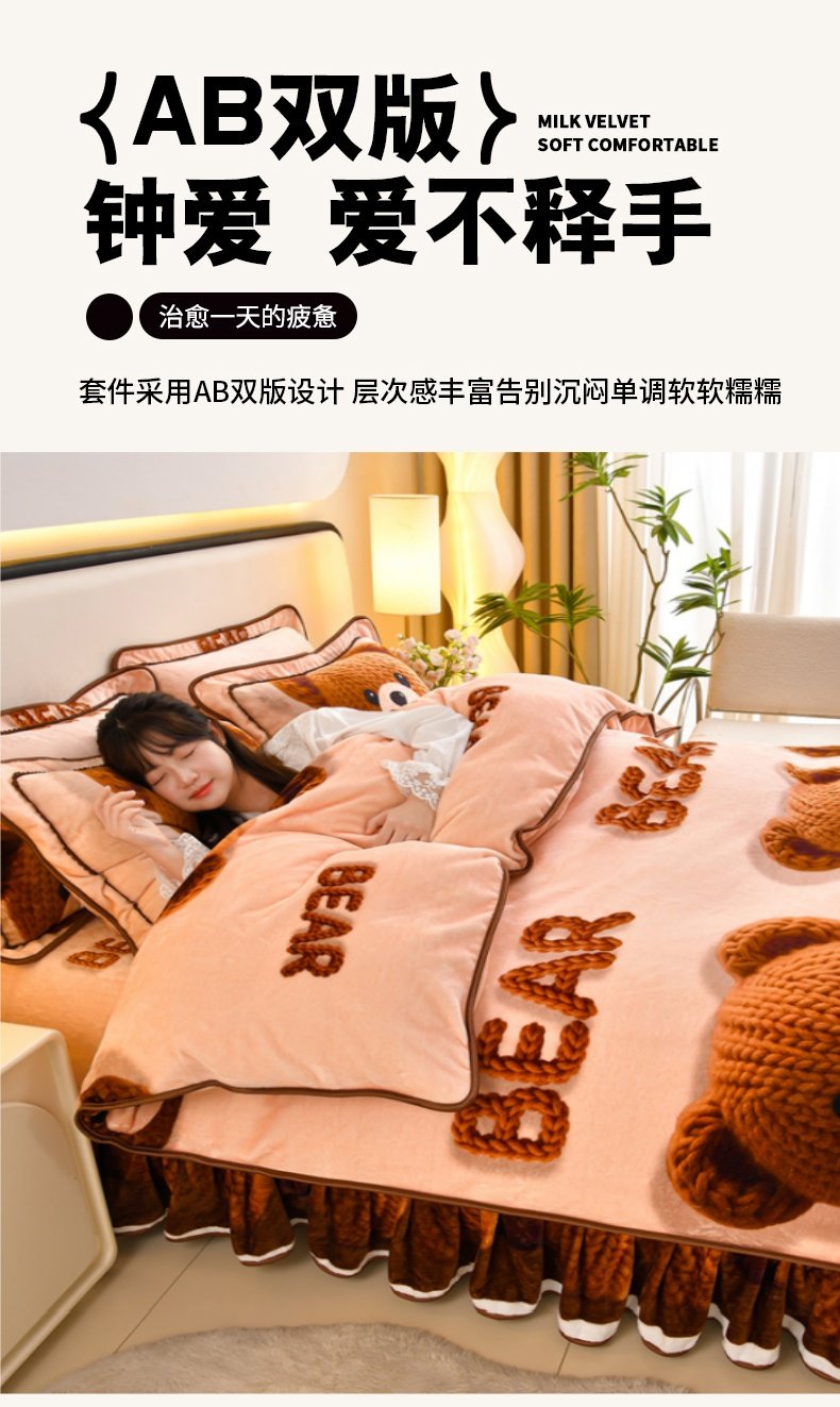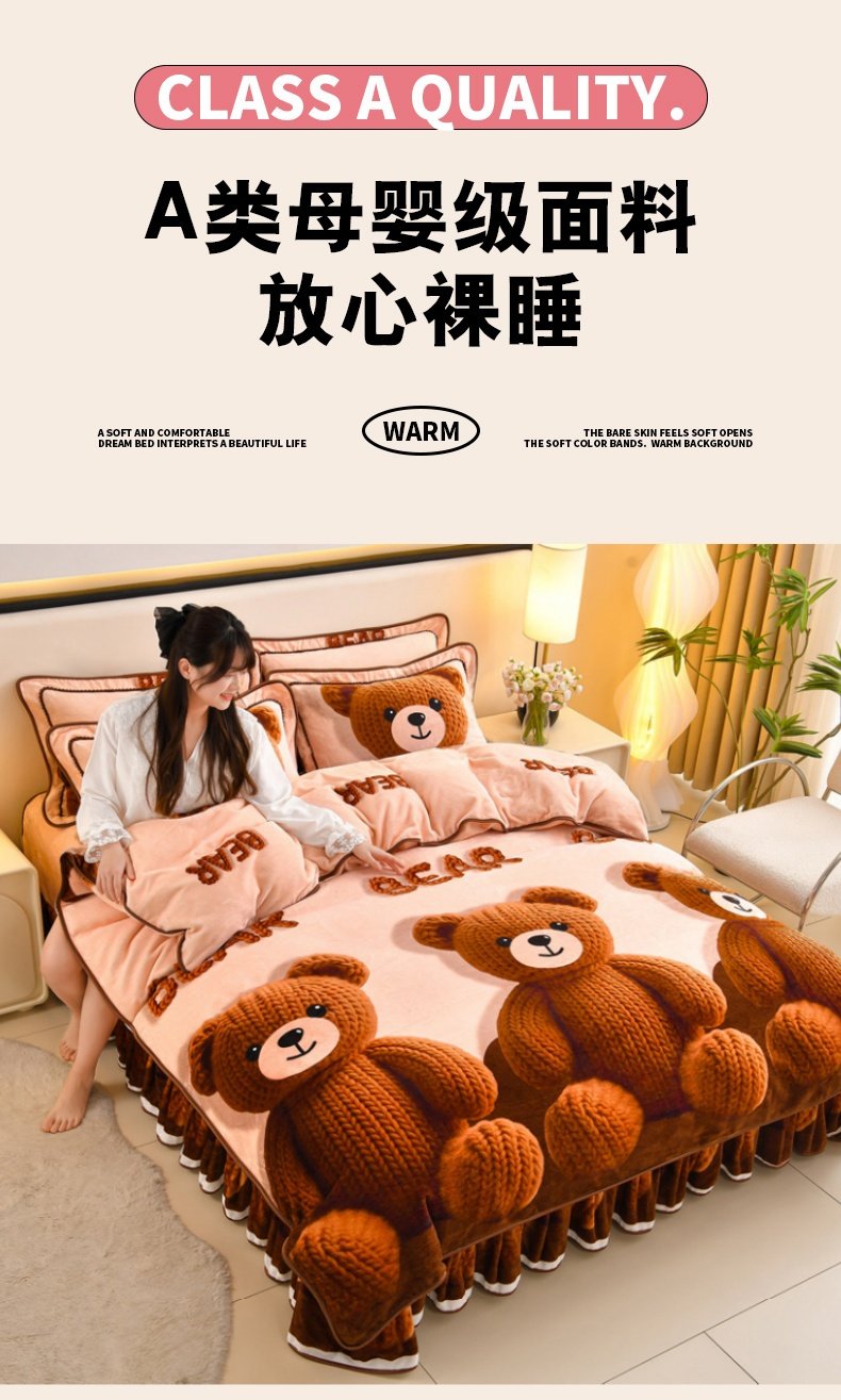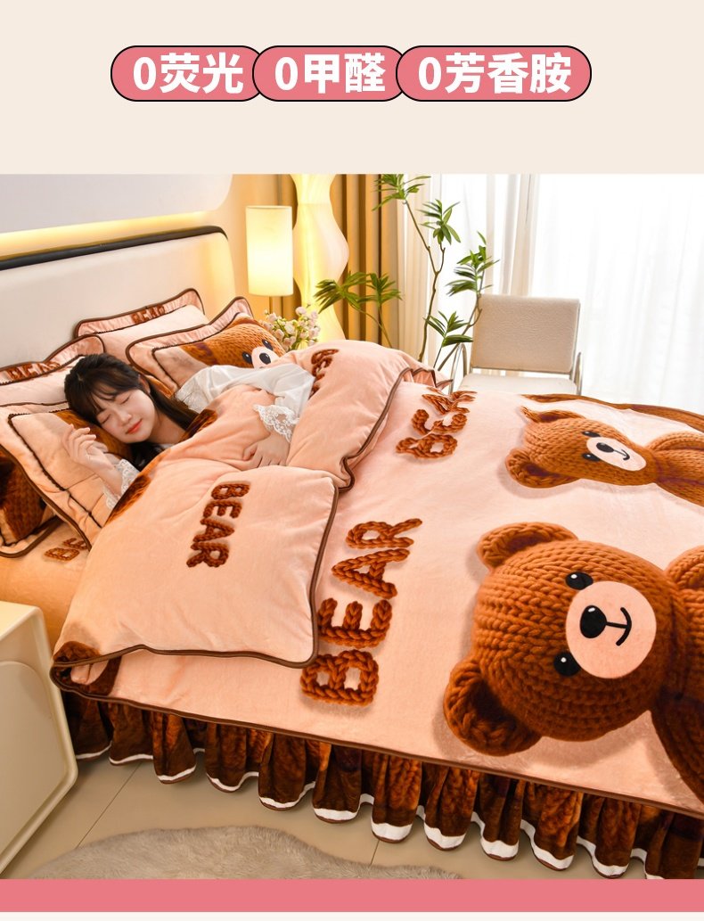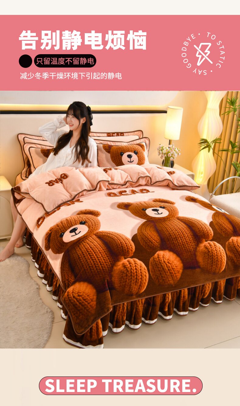 Winter Thickened Milk Velvet Four-Piece Set Anti-Static Coral Velvet Duvet Cover Bed Sheet 2025 New Flannel for Bed Use