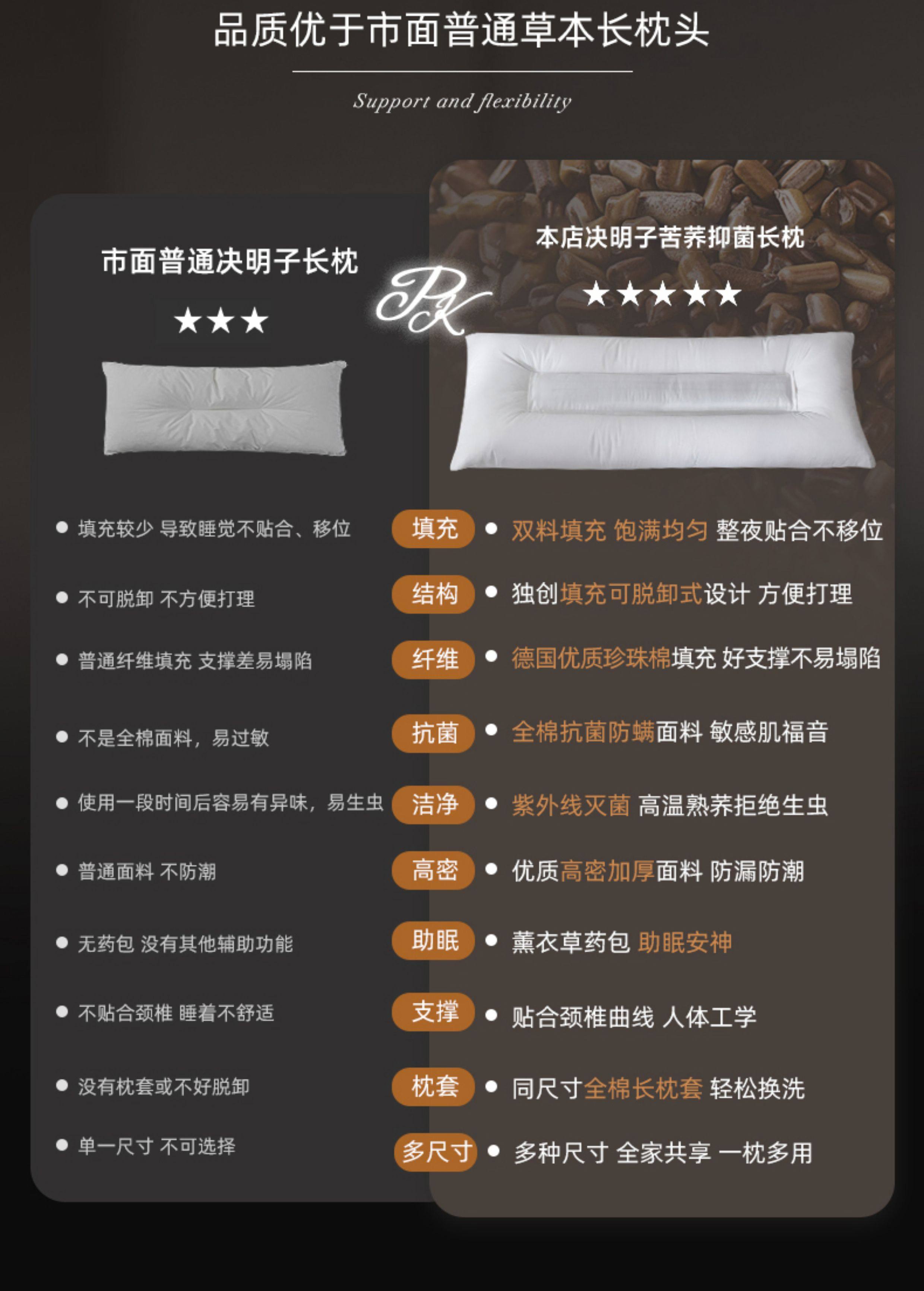 Cassia Seed Double Long Pillow for Neck Support and Sleep Aid 1.5m Couple Pillow Integrated 1.8m Long Pillow Buckwheat Whole a