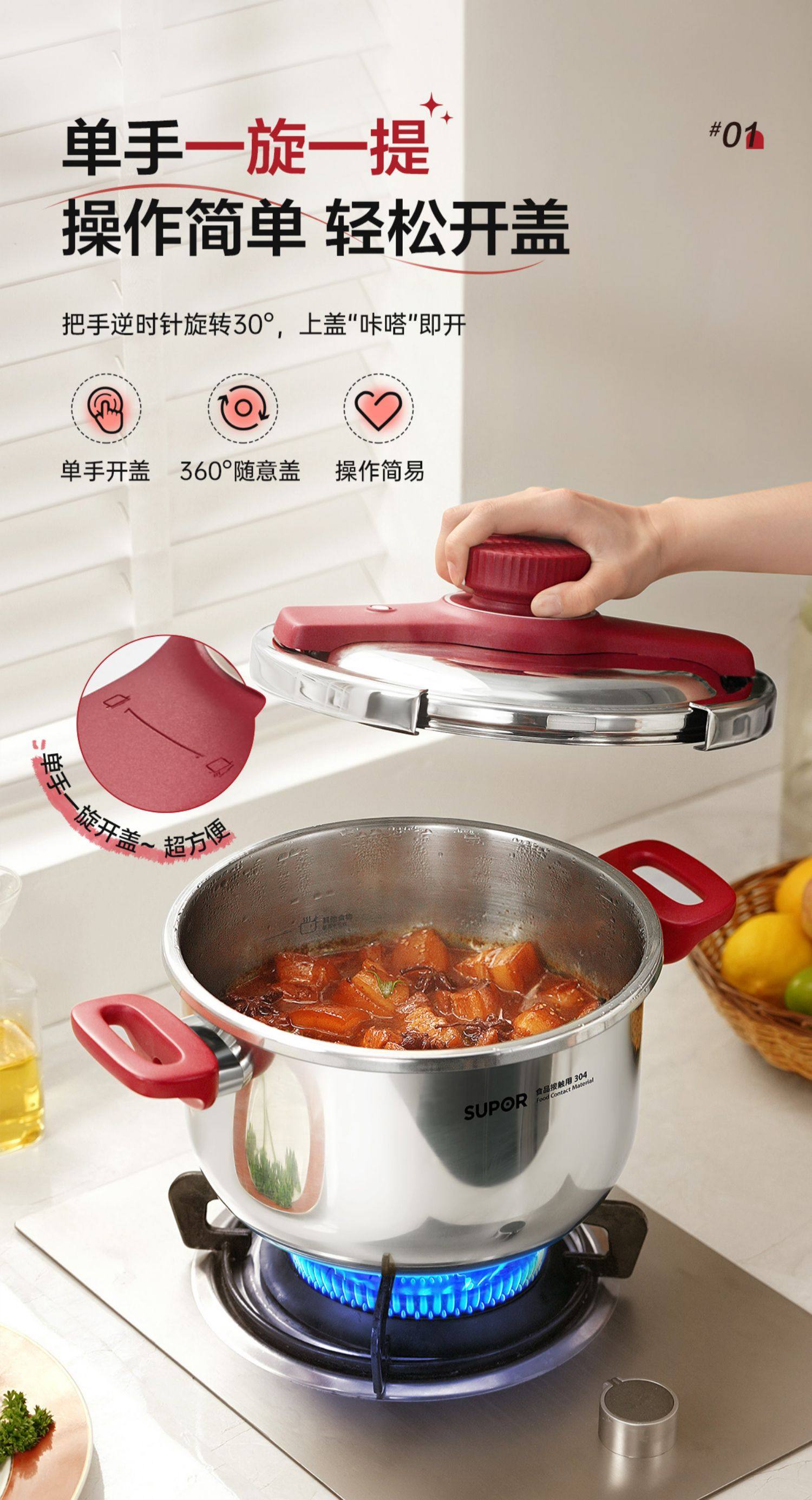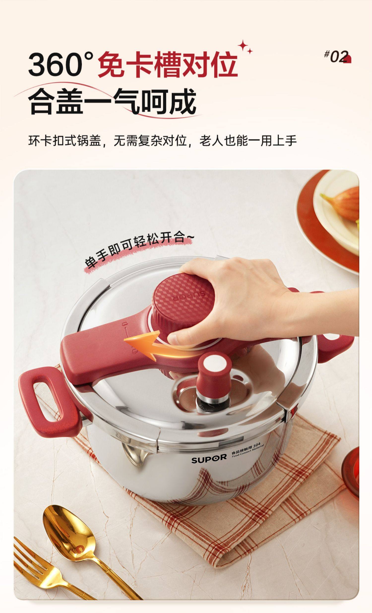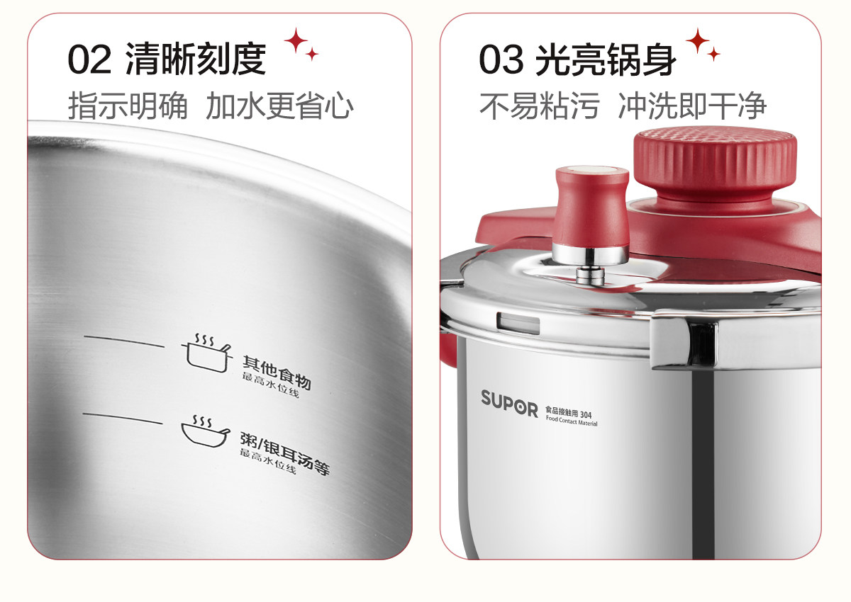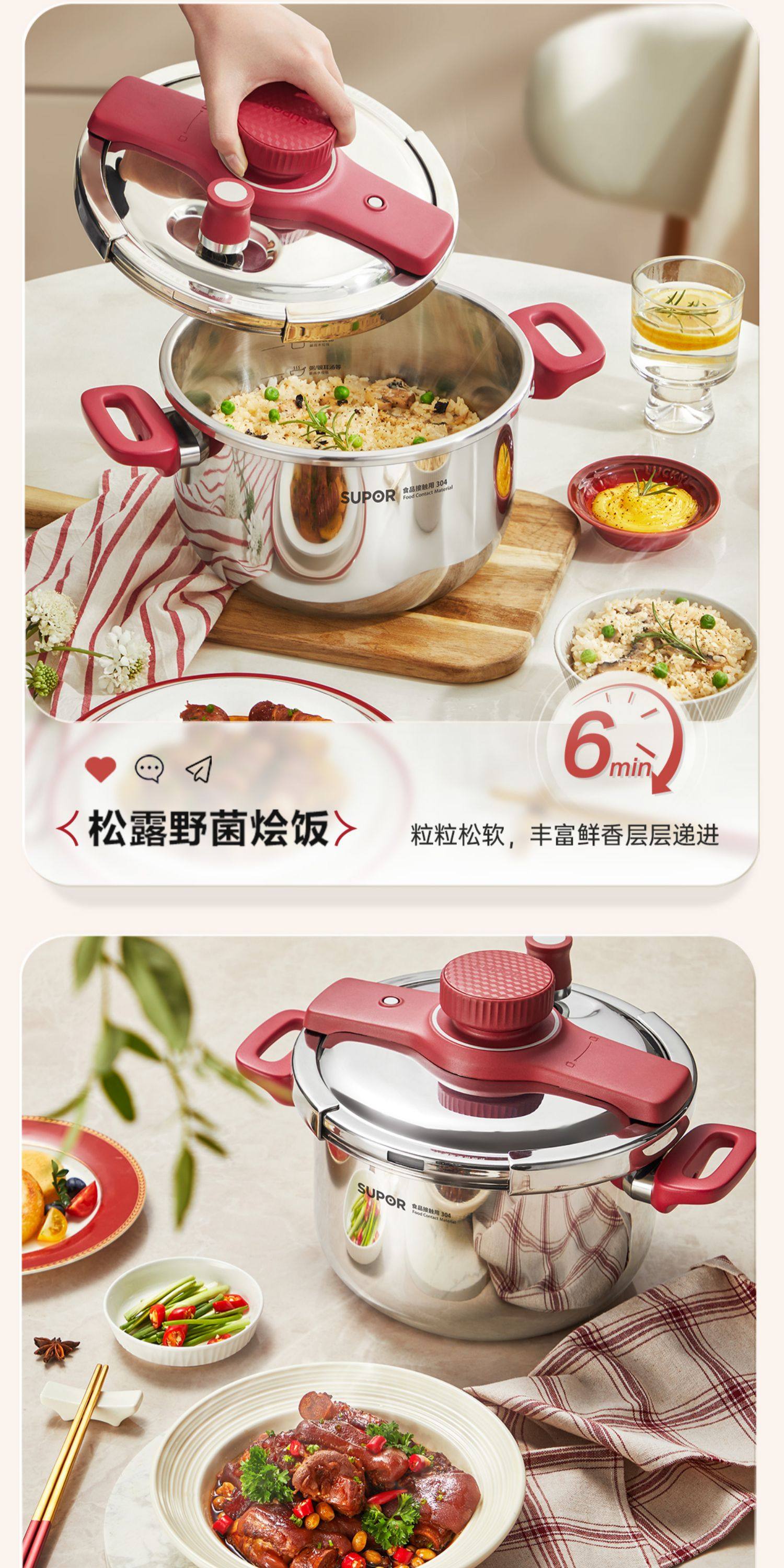 [Flagship Genuine Product] Supor Pressure Cooker for Home Use, Stainless Steel Small Pressure Cooker, New Model for Gas Stove and Induction Cooker