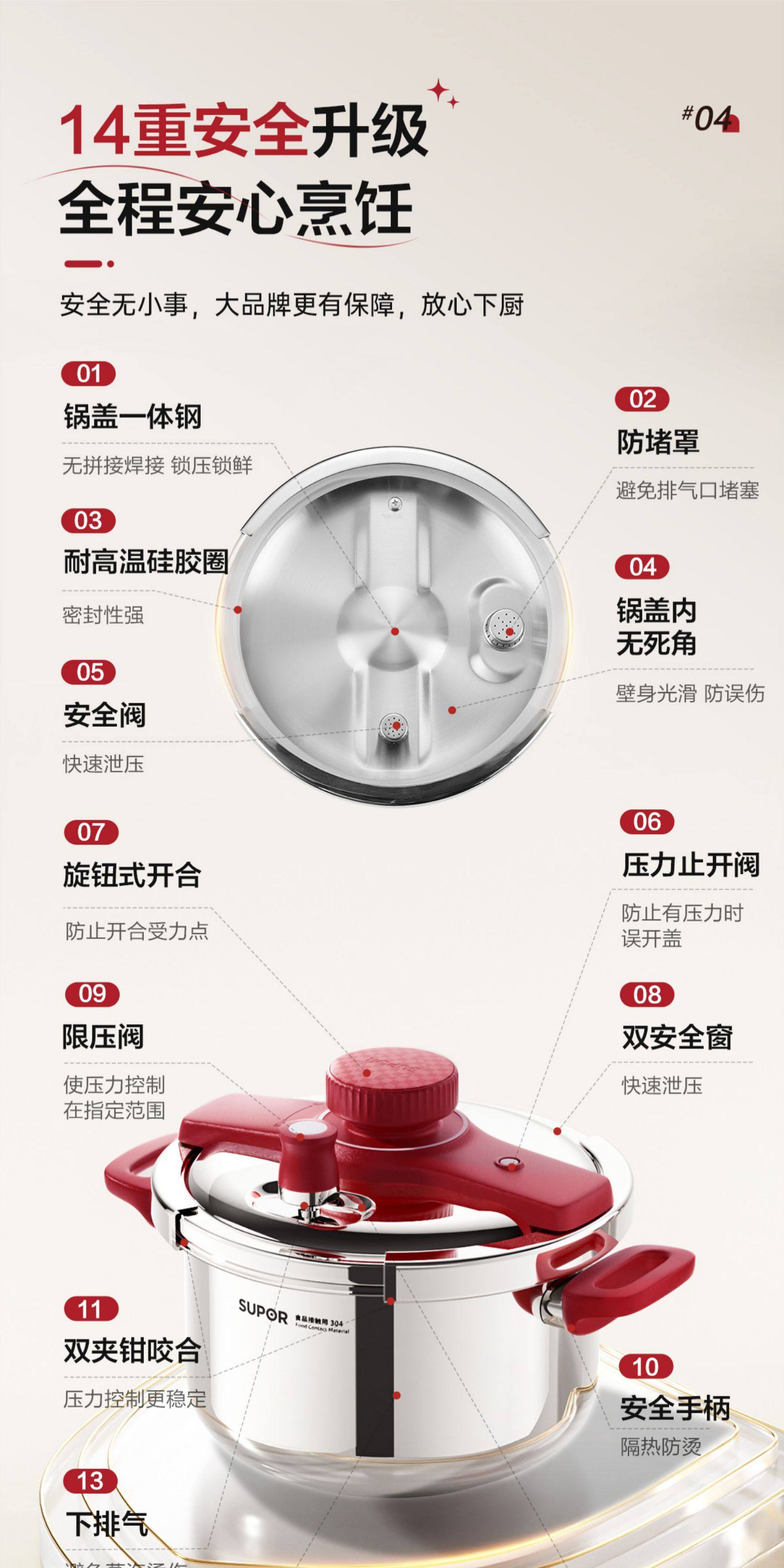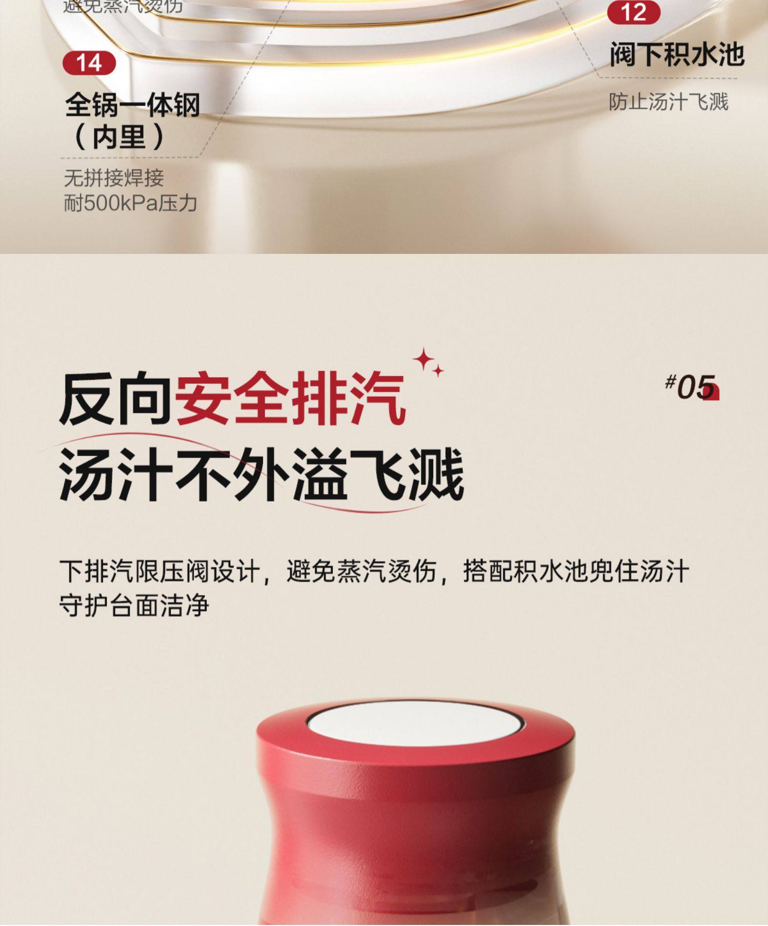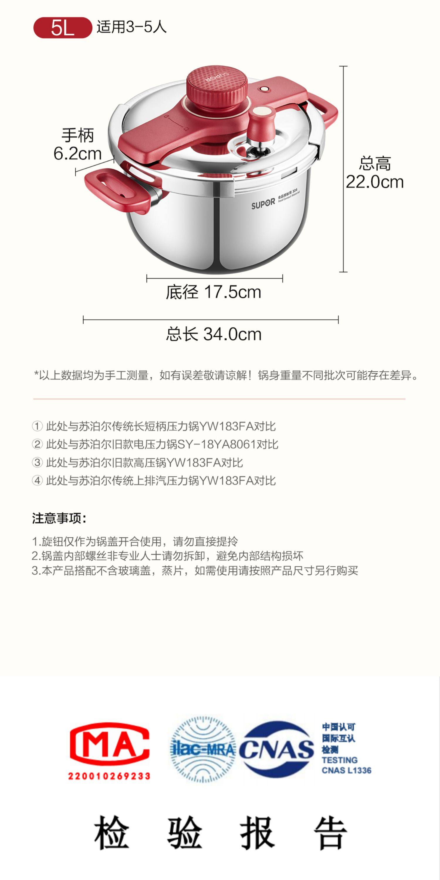 | Color Classification | Upgraded to 100Kpa [Can Be Used as a Soup Pot/Steamer/Pressure Cooker],14 Layers of Security Protection [Newly Upgraded Burgundy Red],5.0L Extra-Thick [Flagship New Model] - Includes Soup Ladle + Lid + Steaming Rack,5.0L Extra-Thick [Flagship New Model] - Includes Soup Ladle + Lid + Steaming Rack + Built-In Steamer Insert,5.0L Extra-Thick [Flagship New Model] - Includes Soup Ladle + Lid + Steaming Rack + Steaming Grid + Heat Diffuser Plate,31 Years of Technical Accumulation [the Only Drafting Unit for Pressure Cookers (National Standard)],New Products with Beautiful Pictures and Gifts [Contact Customer Service for Details] |