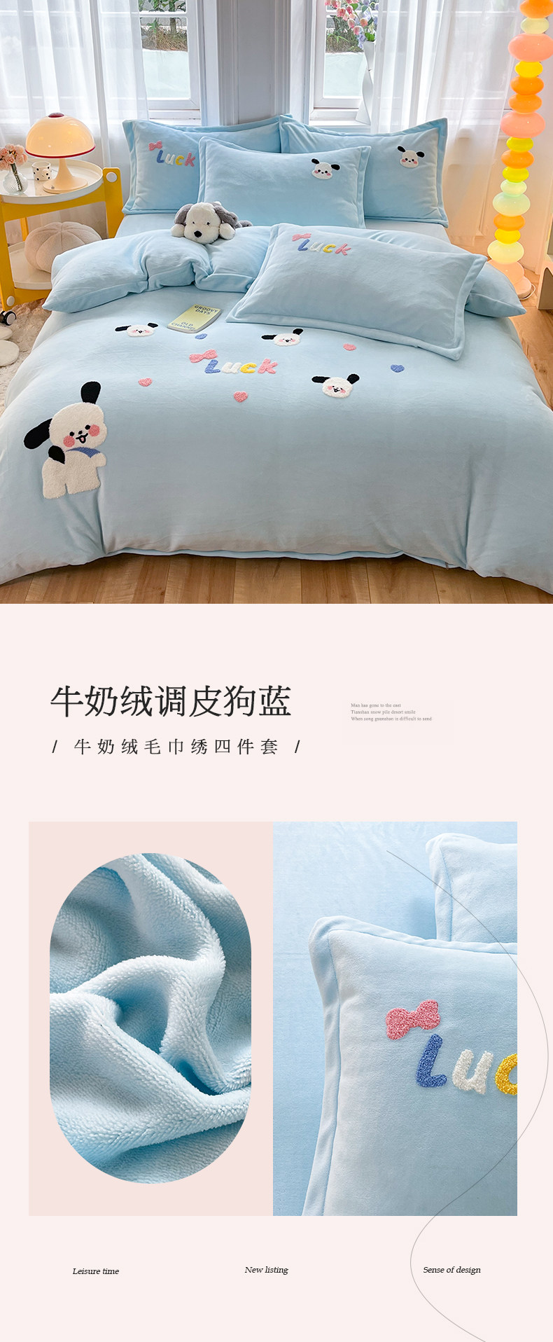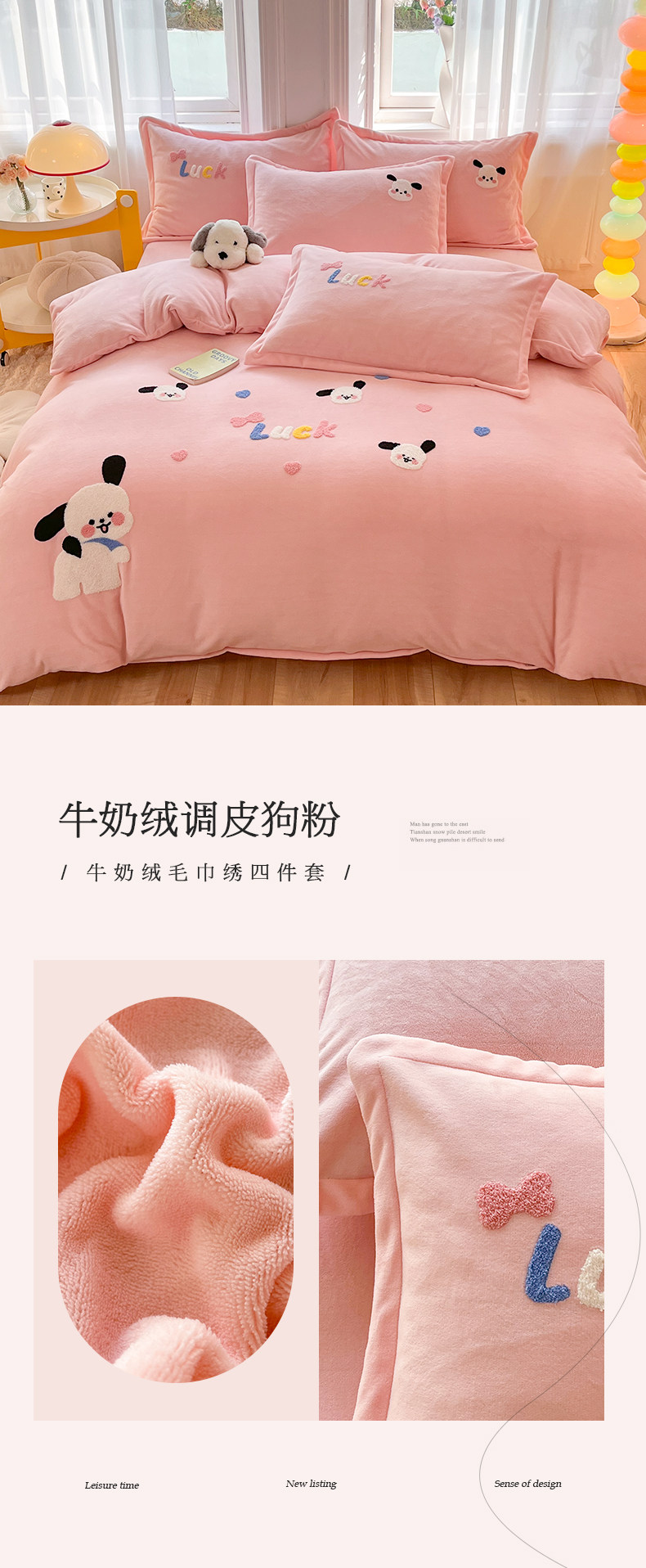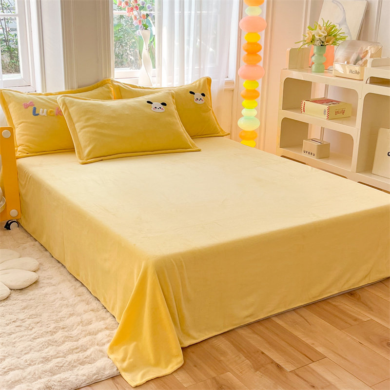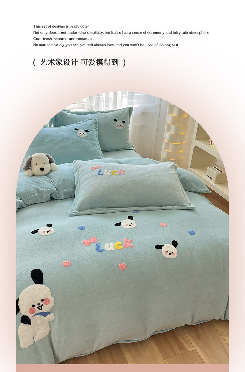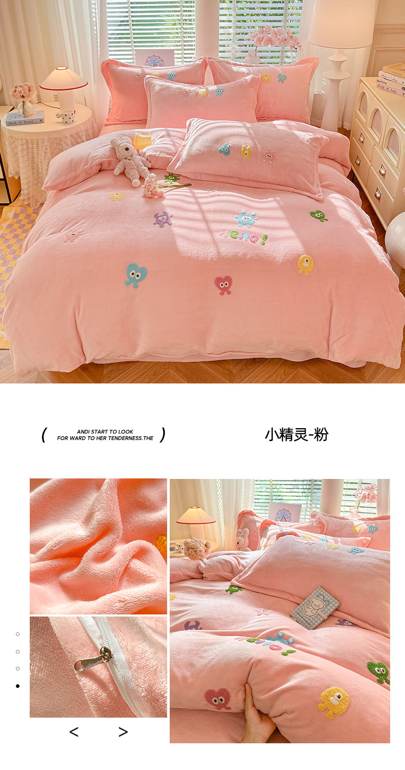 Class a New Cartoon Towel Embroidery Milk Velvet Four-Piece Set, Thickened and Warm Bed Sheet, Duvet Cover, Fleece-Lined Bedding