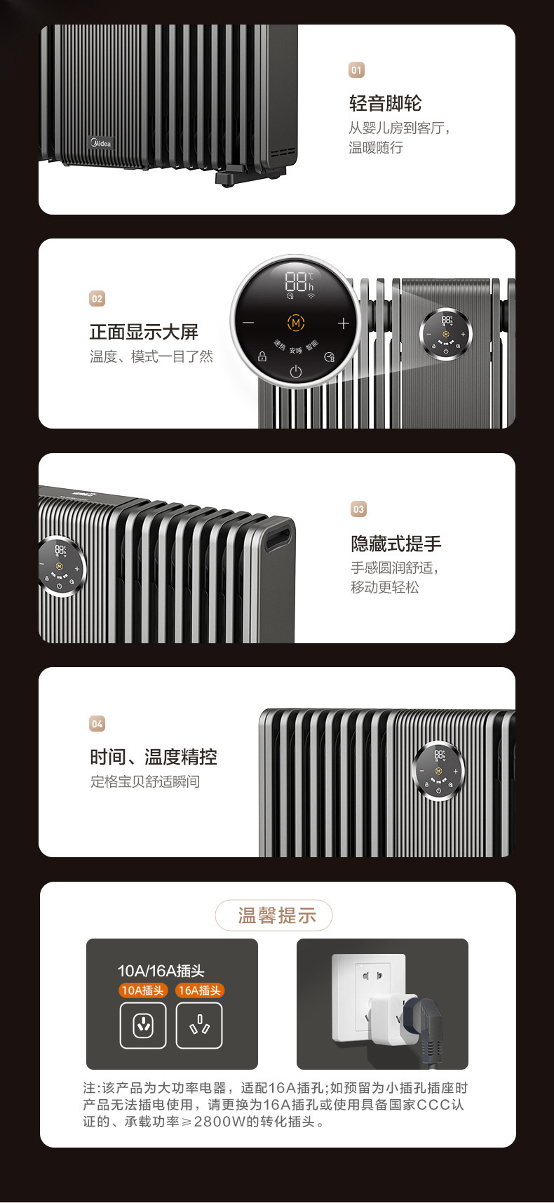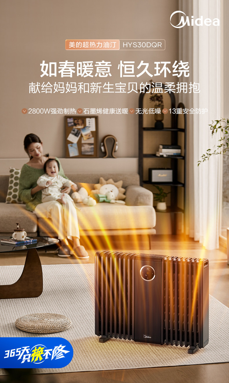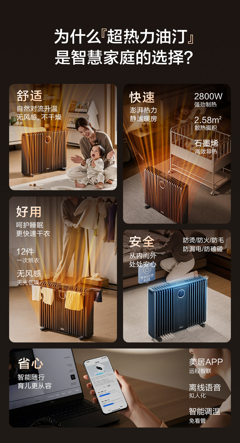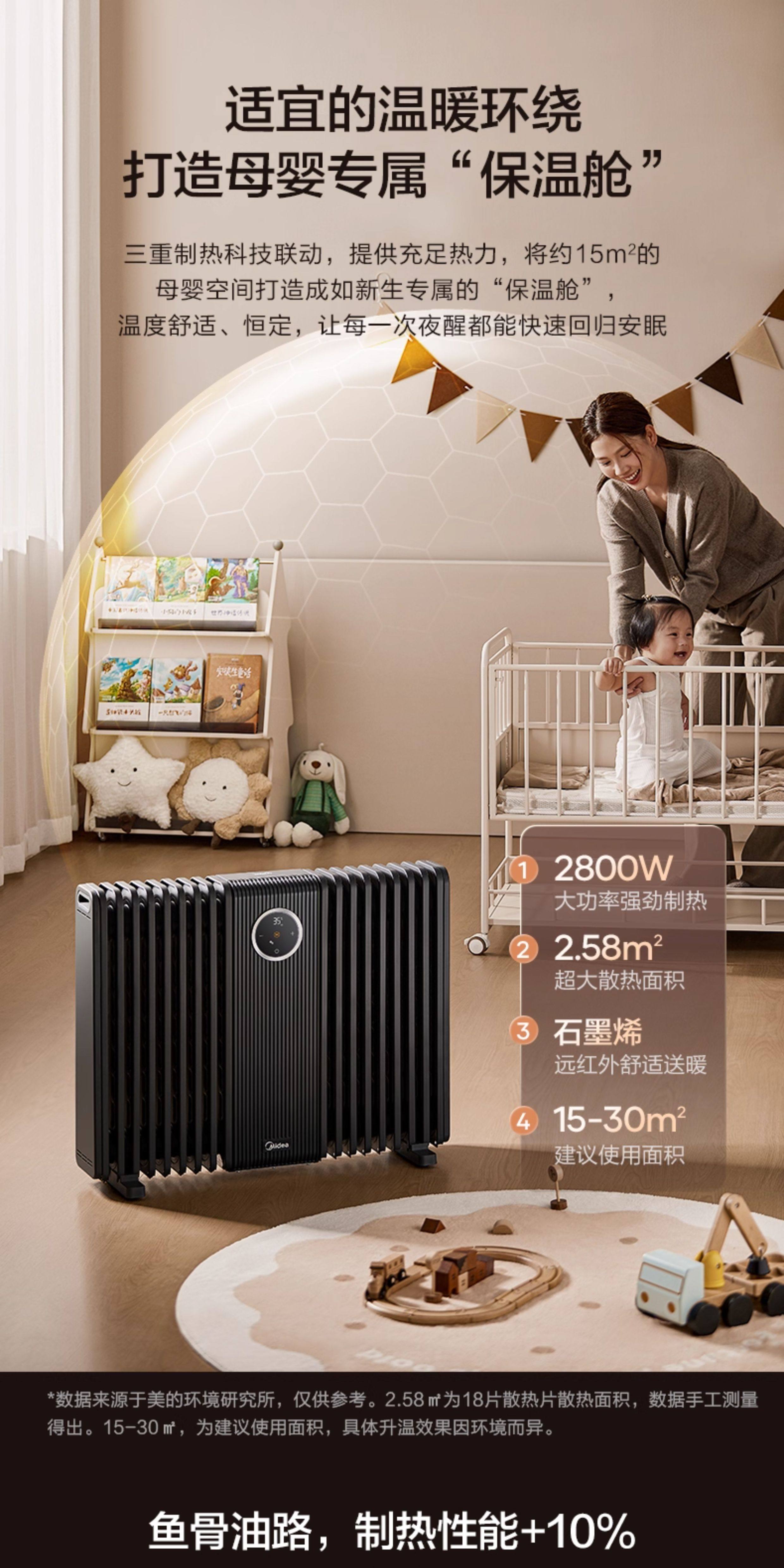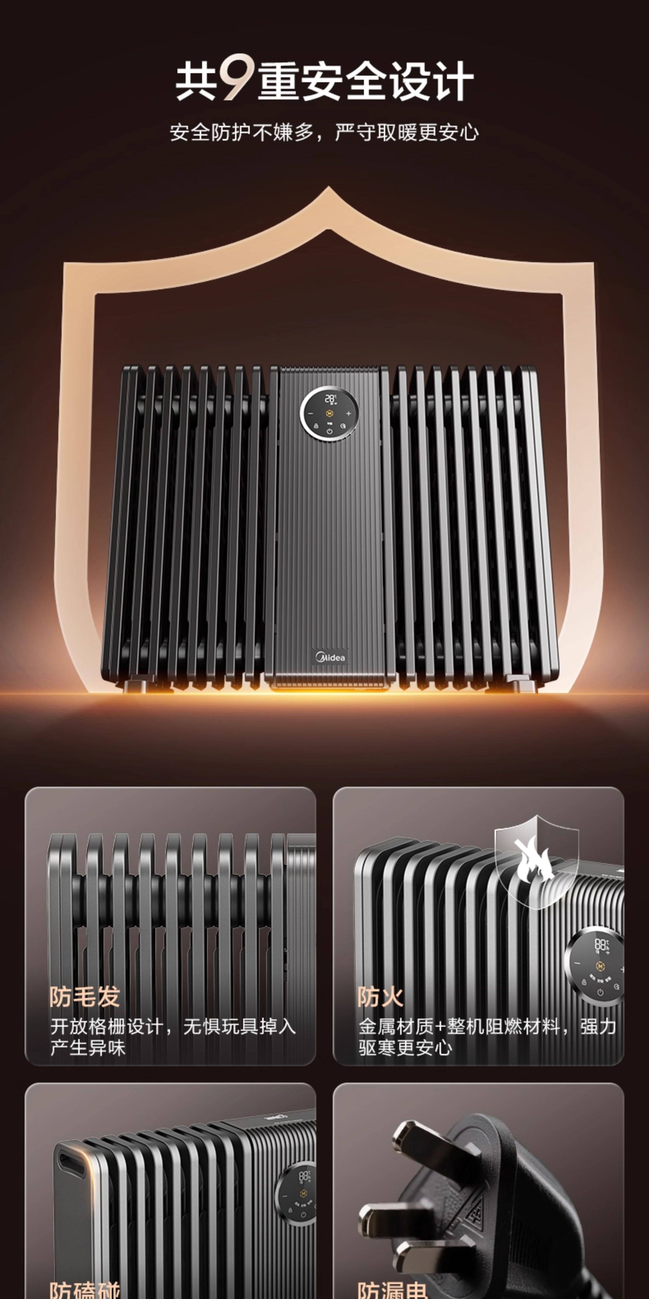 Midea Graphene Oil Heater, High-End Household Electric Heater, Energy-Saving, Fast Heating, Large Area Coverage, 2025 New Model