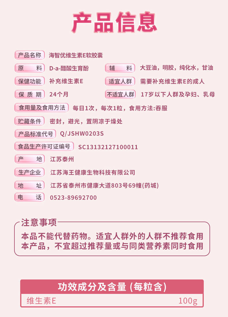 Neptune Premium Brand Hai Zhi You Vitamin E Soft Capsules Nutritional Supplement Imported Ve for Men and Women Facial Topical Use