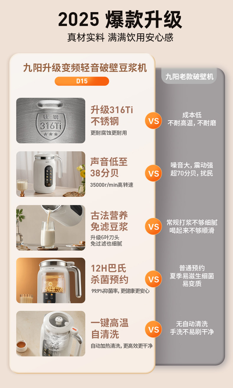 Joyoung Blender for Home Use, Multifunctional, Variable Frequency, Quiet Soy Milk Maker, Large Capacity, Official Flagship Genuine Product, New Model D15