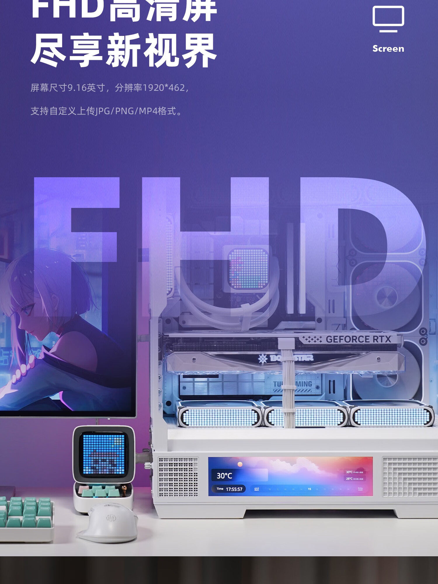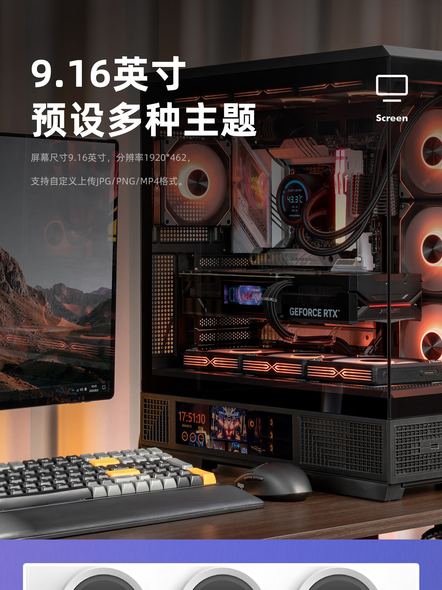 Patriot Starlit Dalan Screen Display Edition Atx Gaming Computer Case Dual 360 Water Cooling 9.16inch Screen Ocean View Room