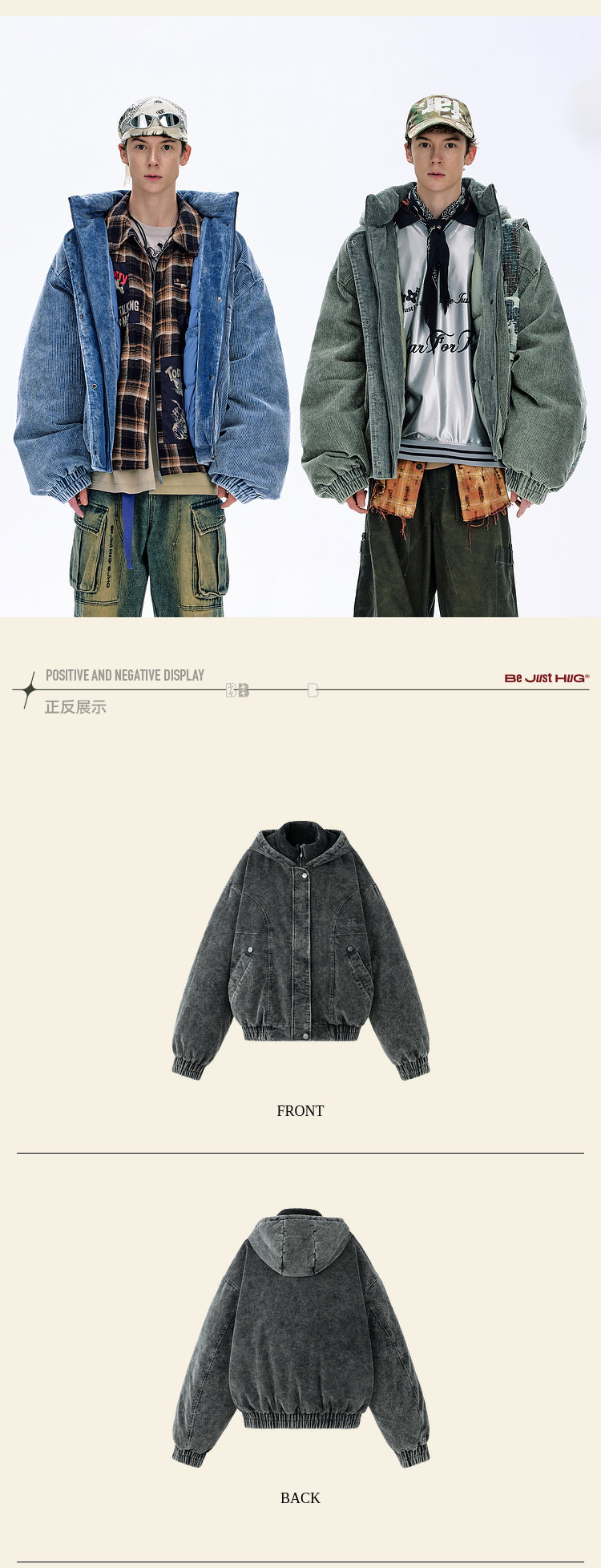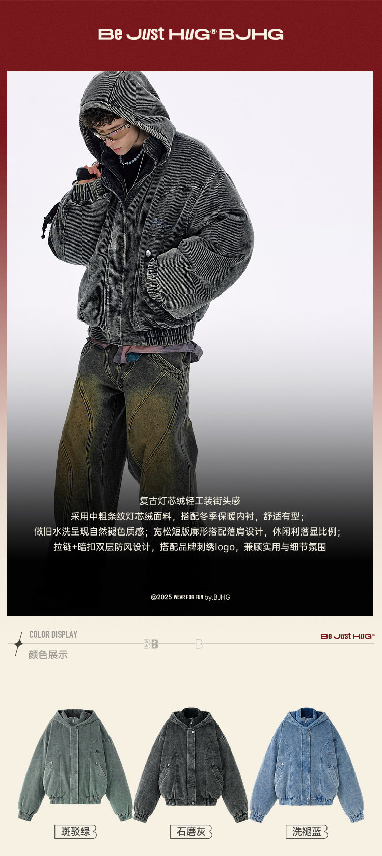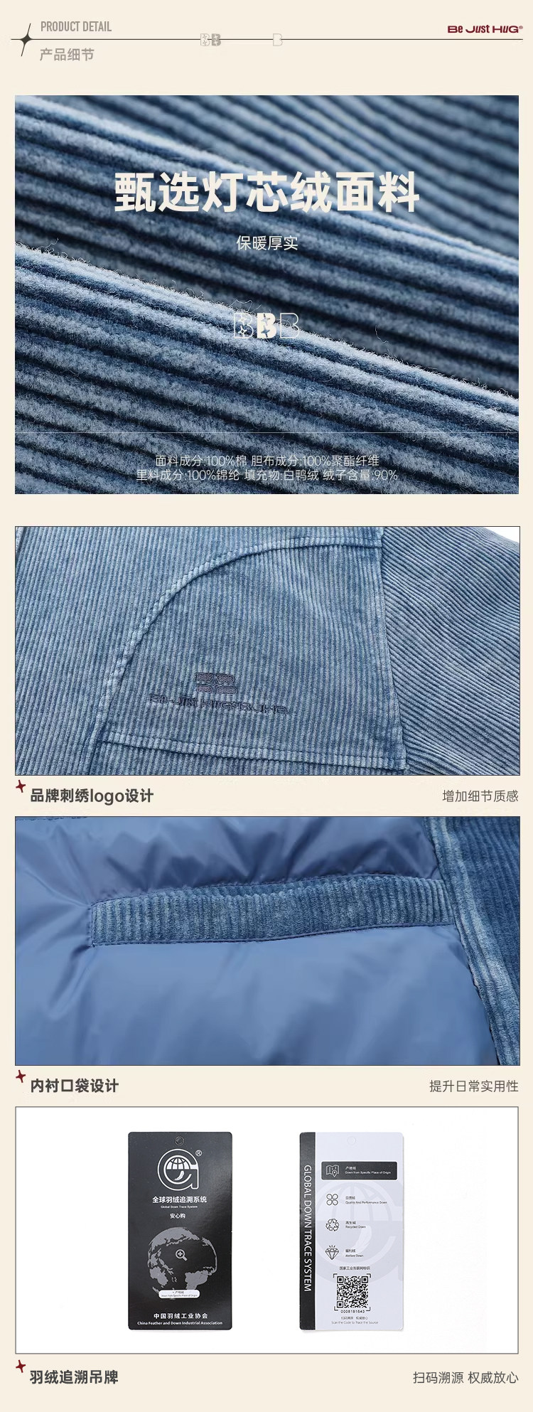 Bjhg Reckless Corduroy down Jacket Men's Winter Retro Barn Style American down Jacket Men's Coat