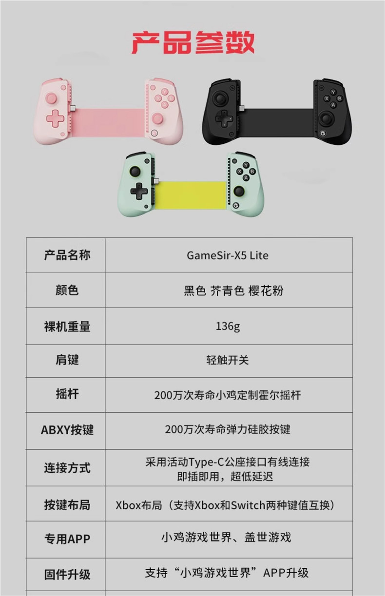 Unparalleled Little Chicken X5Lite Fearless Contract Mobile Game Controller, External Device That Can Connect to Mobile Phones and Tablets, Stretchable Game Assistant for Android Y700, Apple Call of Duty, Honor of Kings, Pubg, Eternal Battlegrounds