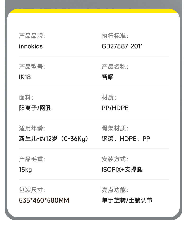 | Certification Standards | 3C Certification,i-Size |