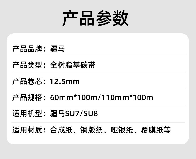 Jiangma Su7/Su8 Original Resin-Based Ribbon Genuine Enhanced Pet Matte Silver Coated Synthetic Paper Self-Adhesive Label Jewelry Lamination Film Ink Cartridge Dual-Axis Small Roll Core Barcode Machine Wax-Based Ribbon