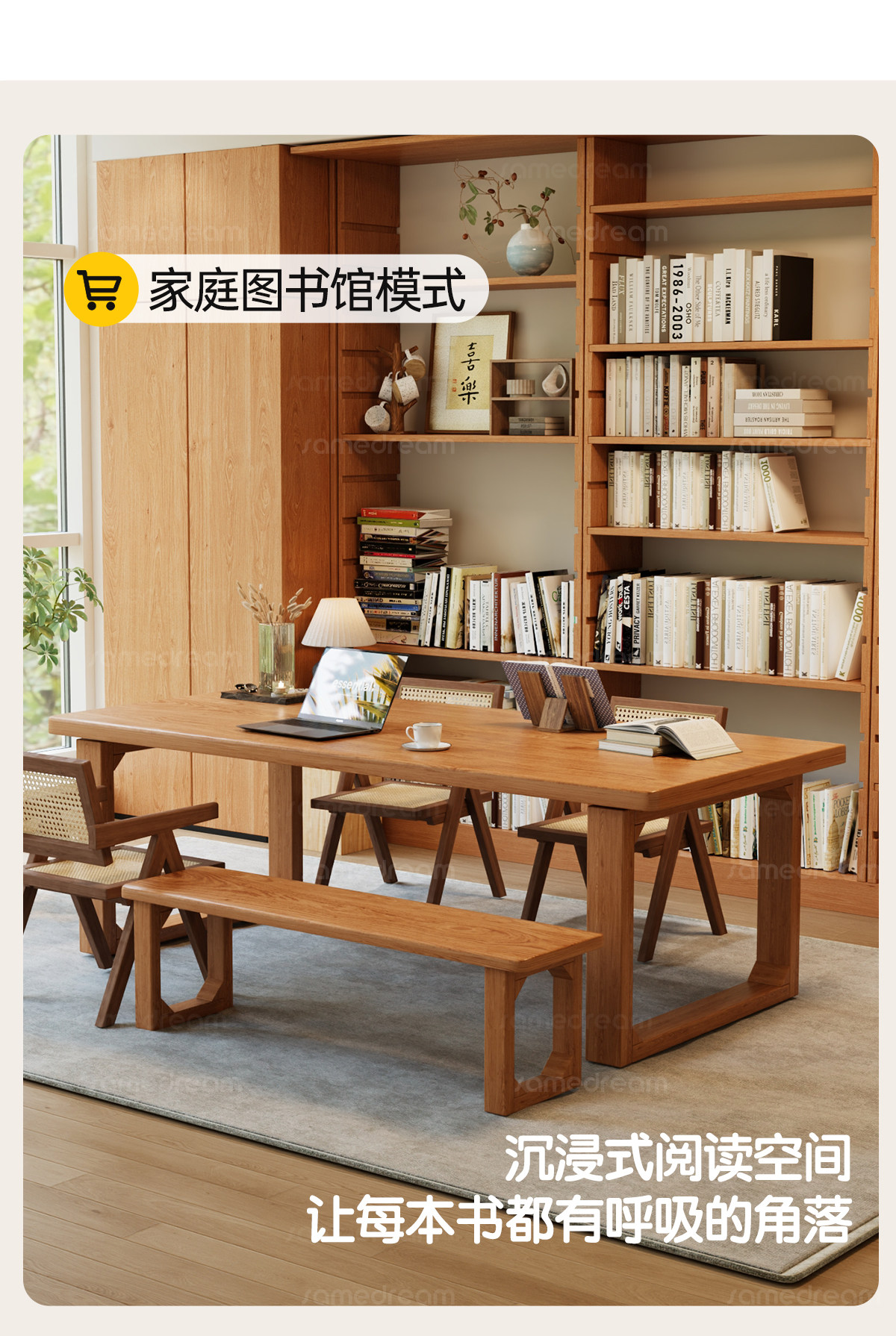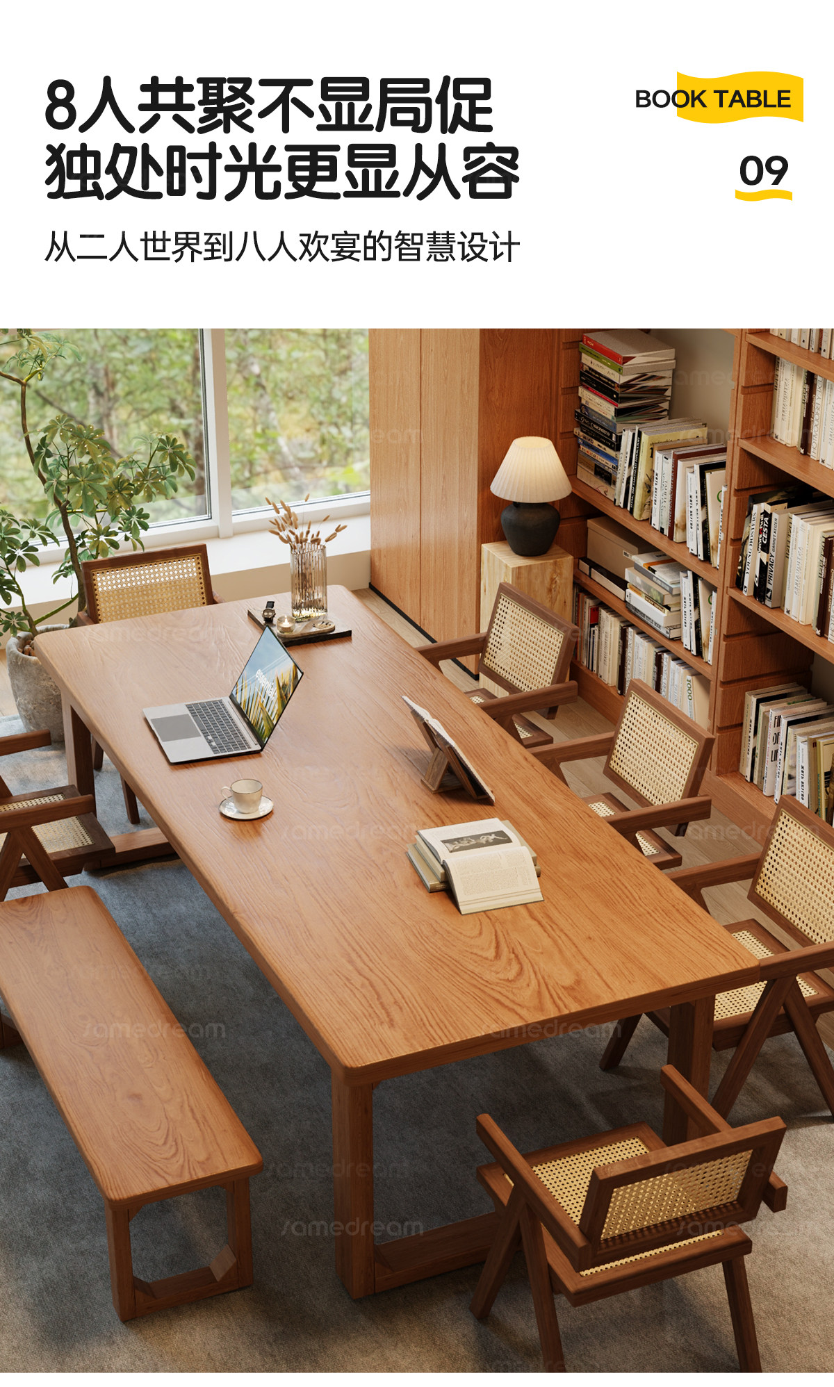 Sanmeng Solid Wood Convertible Living Room Desk, Computer Desk, Home Office Desk, Dining Table, Double Study Desk, Workbench