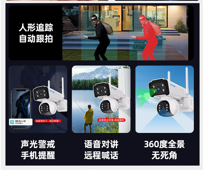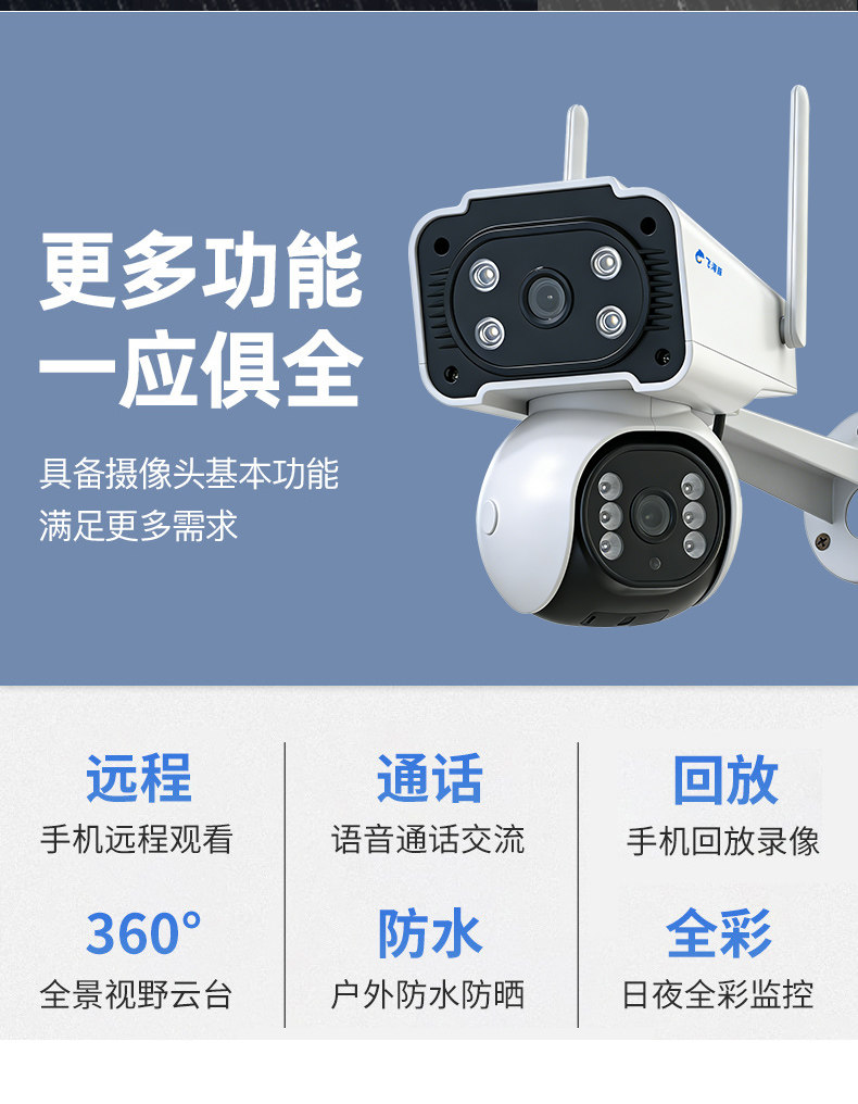 Wireless Wifi Camera Home Monitor 360-Degree No Blind Spots Outdoor Remote Connection to Mobile Phone High-Definition Dual Lens