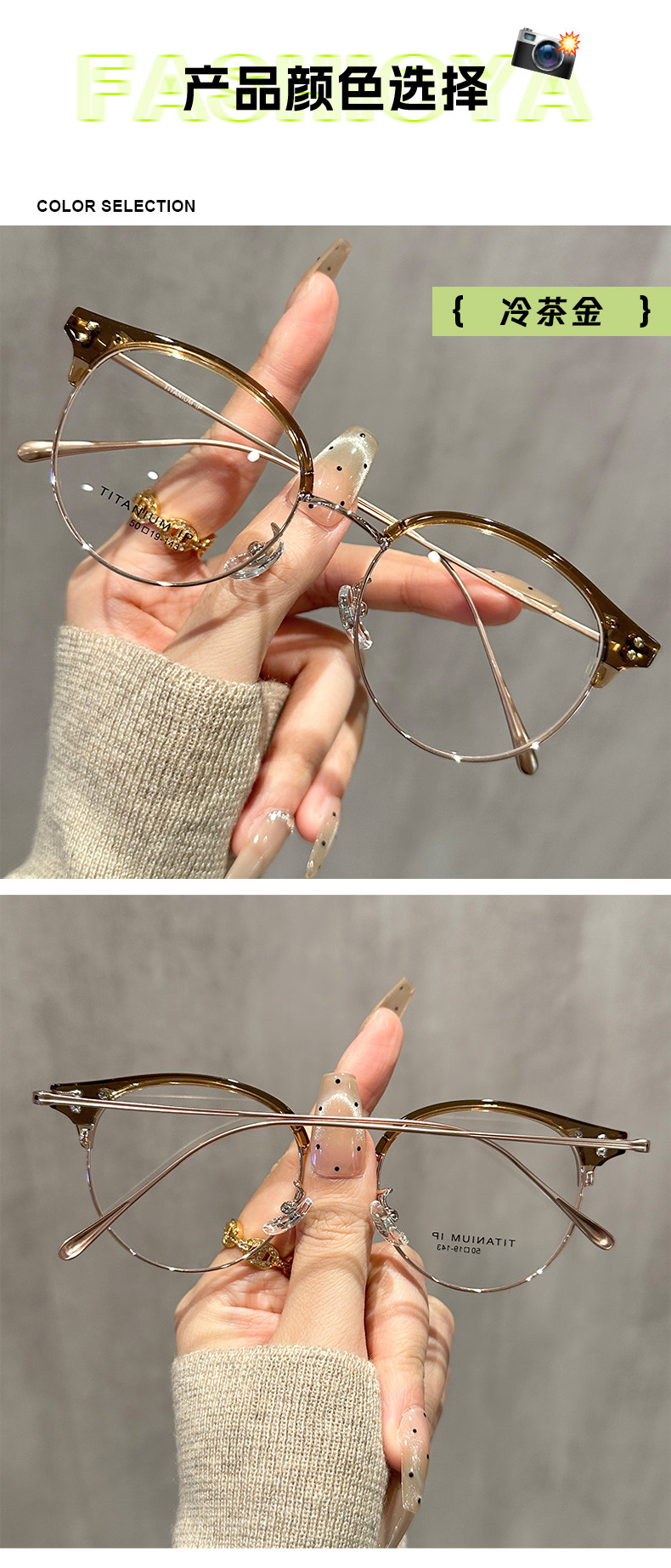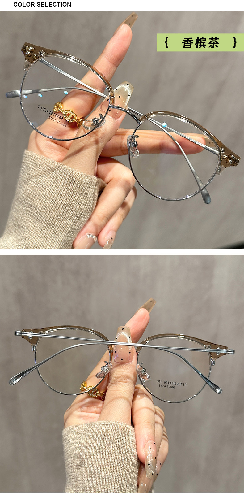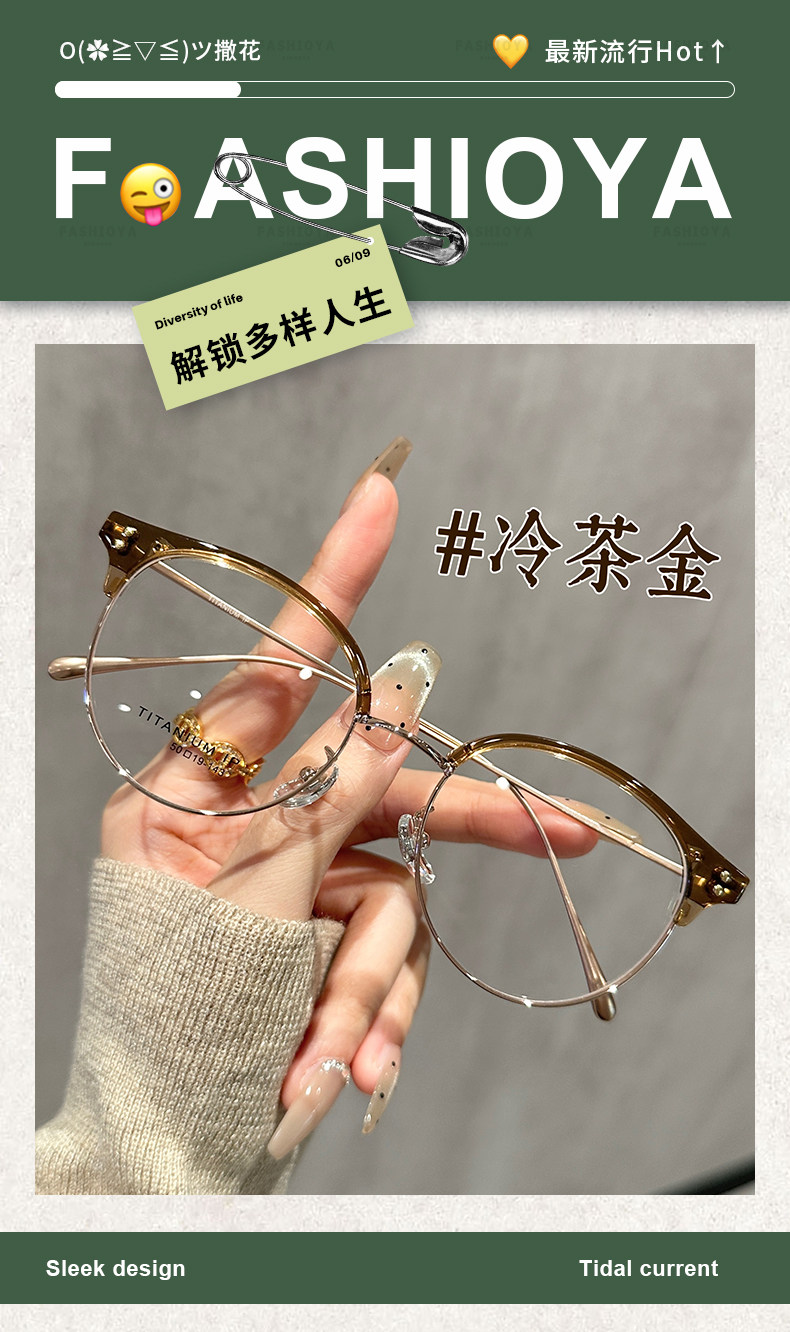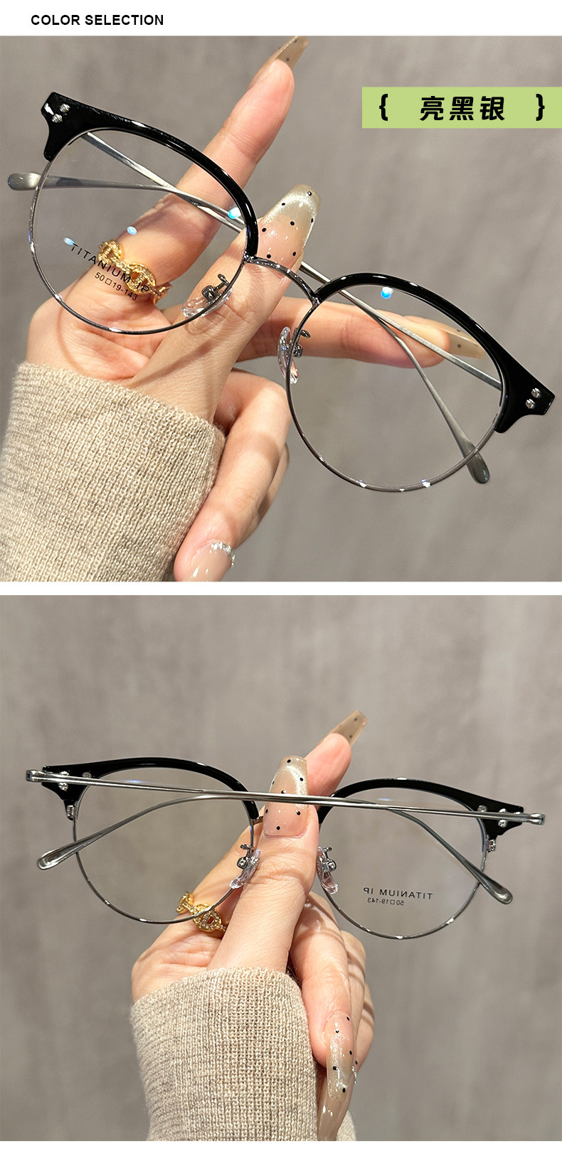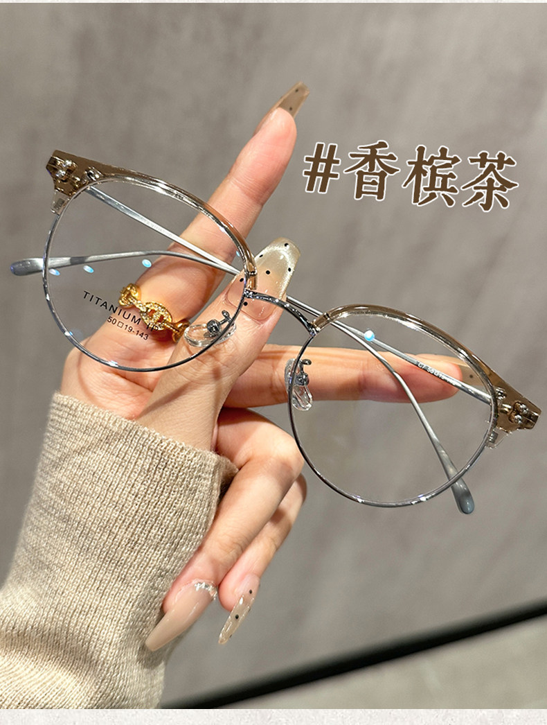 Ultra-Light Titanium Half-Frame Glasses for Nearsighted Women, Can Be Customized with Prescription Lenses, Elegant and Flattering, High-Tech, Blue Light Blocking Eyewear