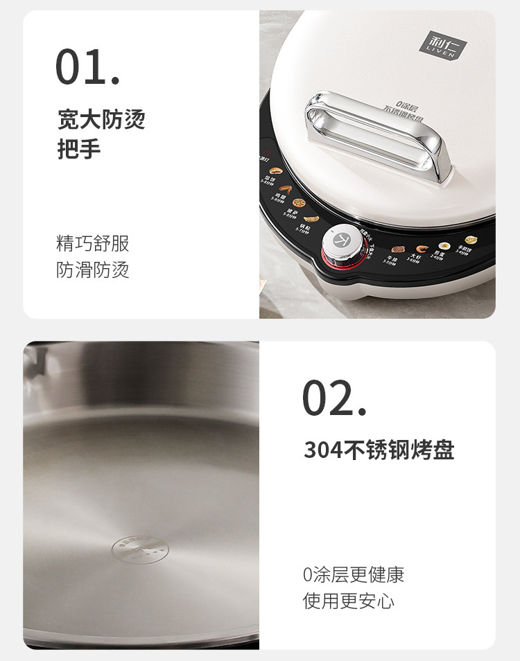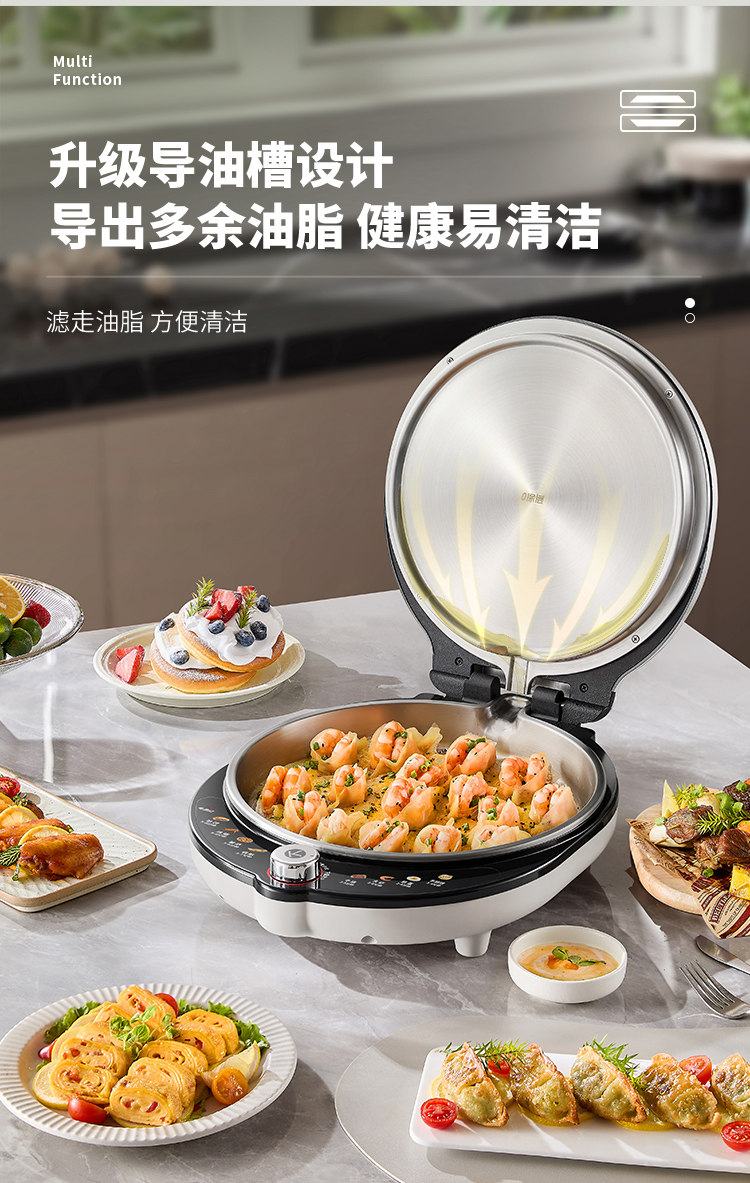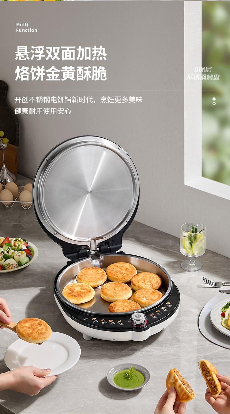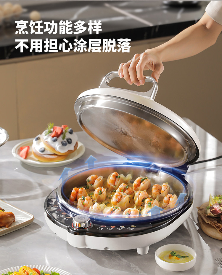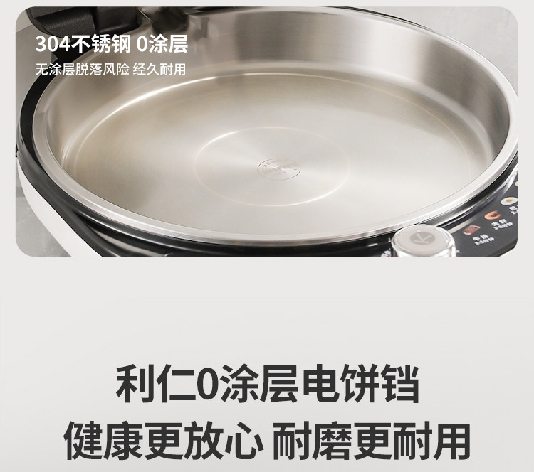 Liren Xiaogangren Pro Stainless Steel Electric Griddle for Home Use, 0-Coating, Double-Sided Heating, Multi-Functional Electric Frying Pan for Making Pancakes