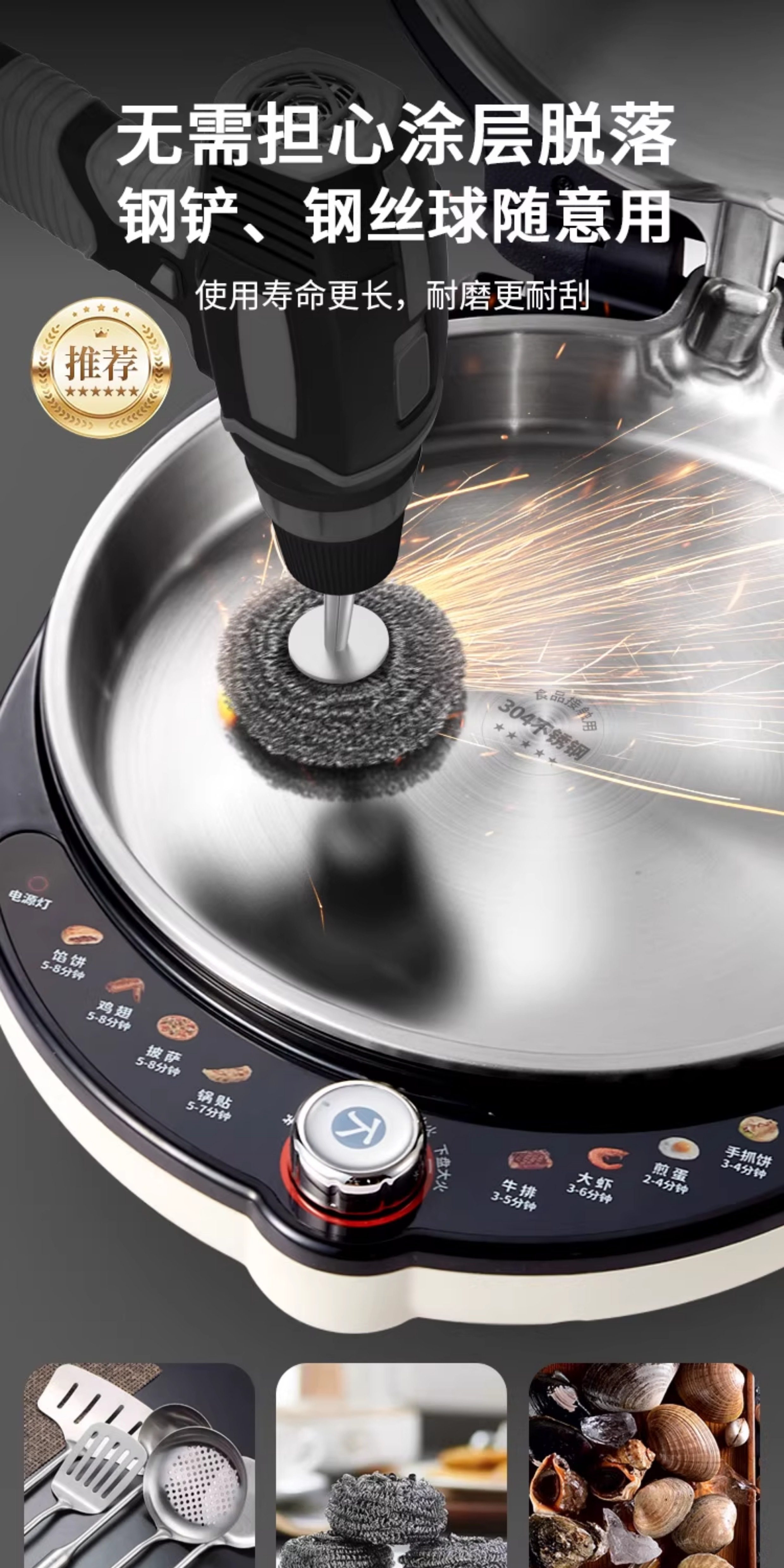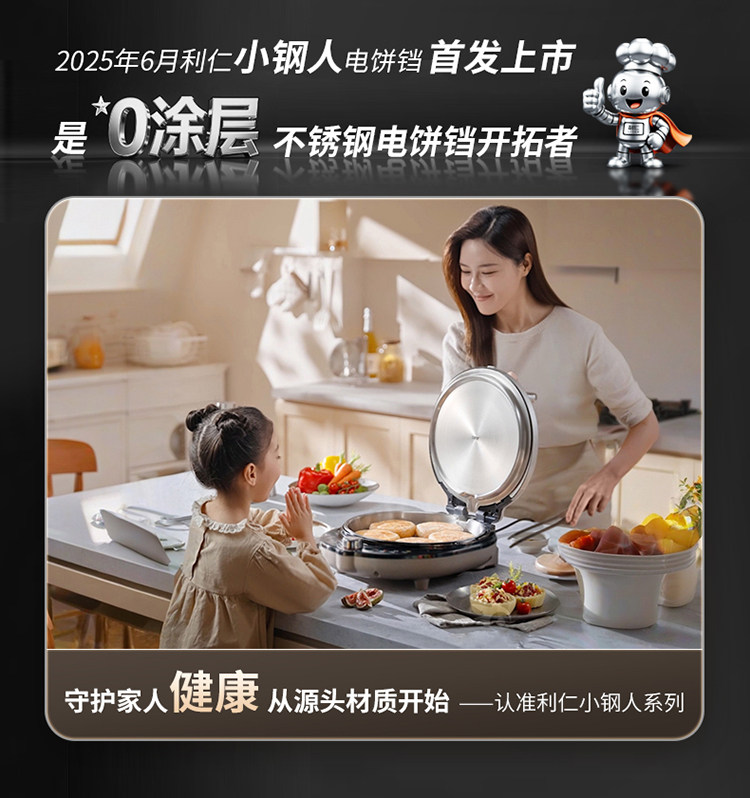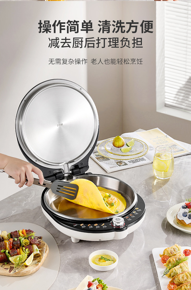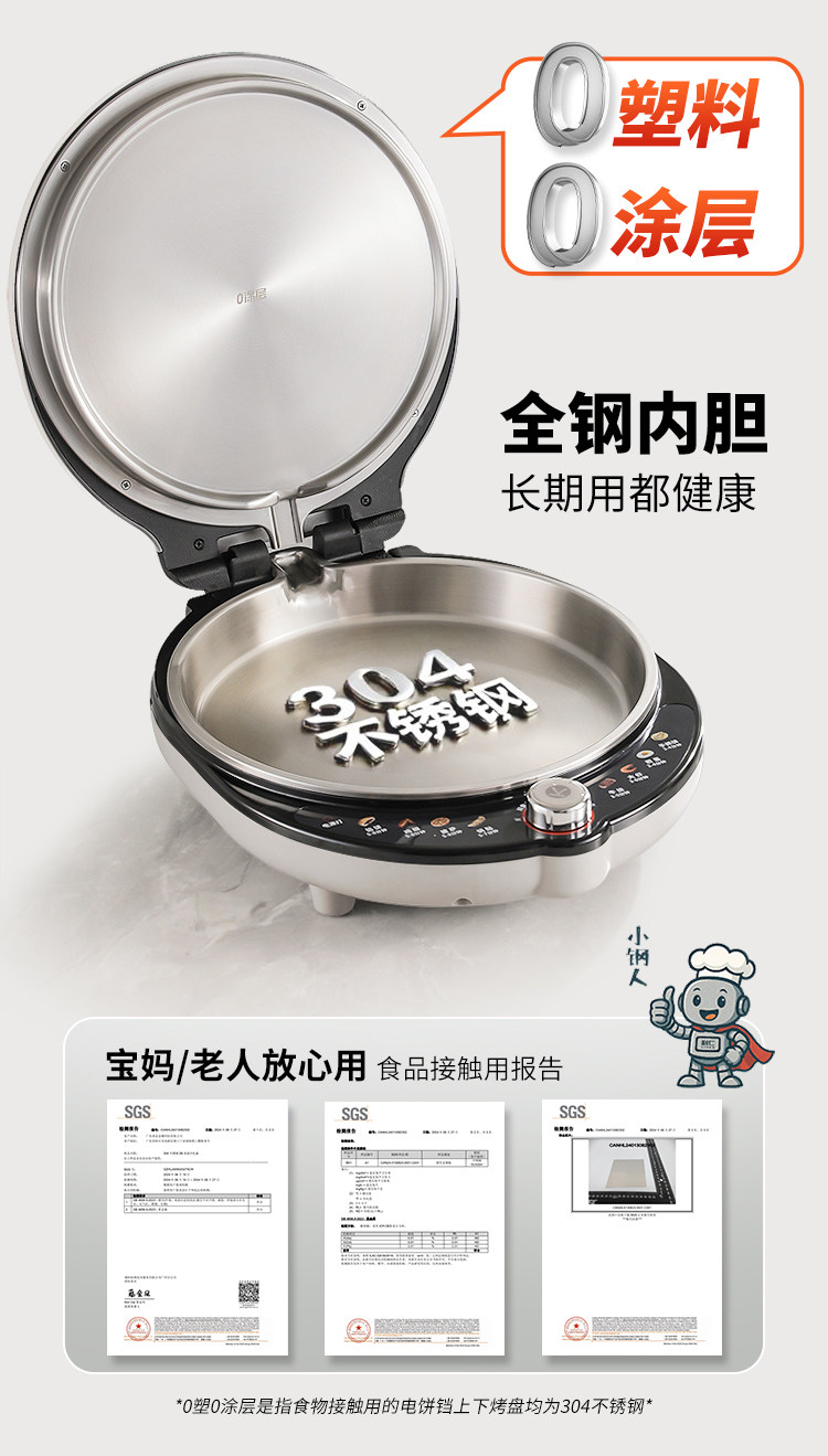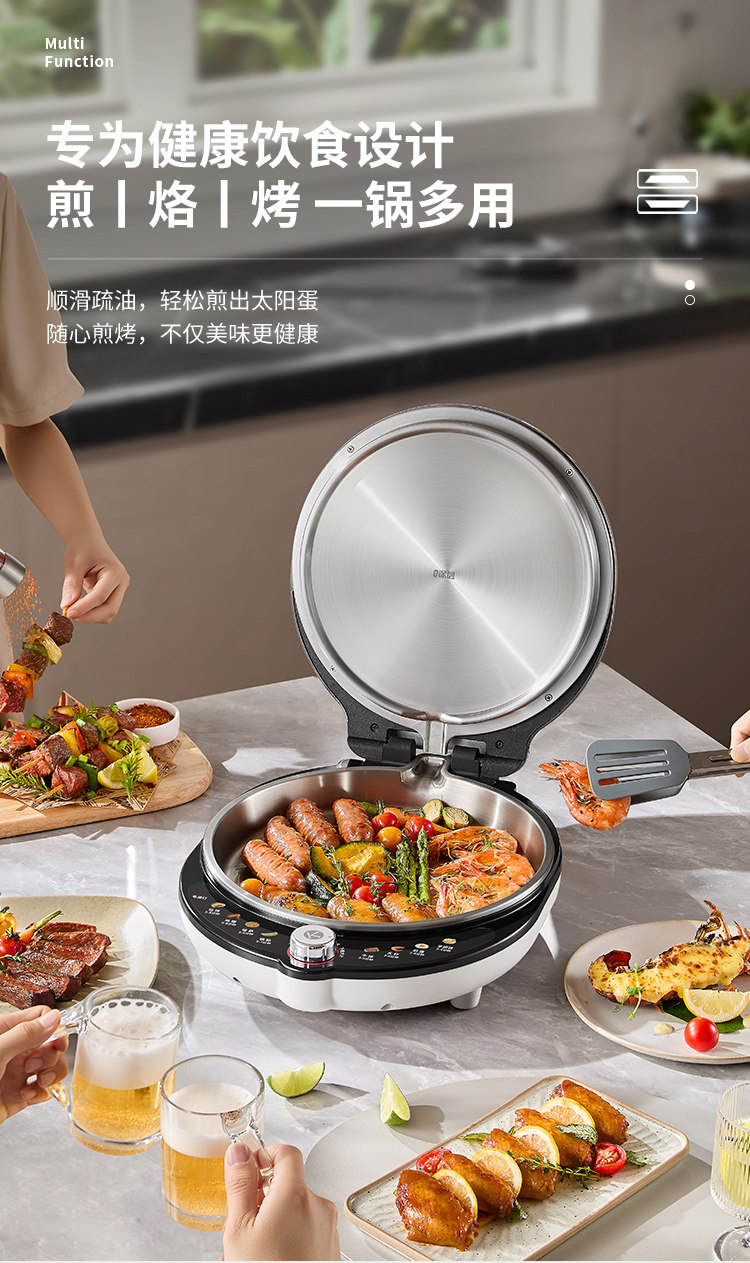Liren Xiaogangren Pro Stainless Steel Electric Griddle for Home Use, 0-Coating, Double-Sided Heating, Multi-Functional Electric Frying Pan for Making Pancakes
