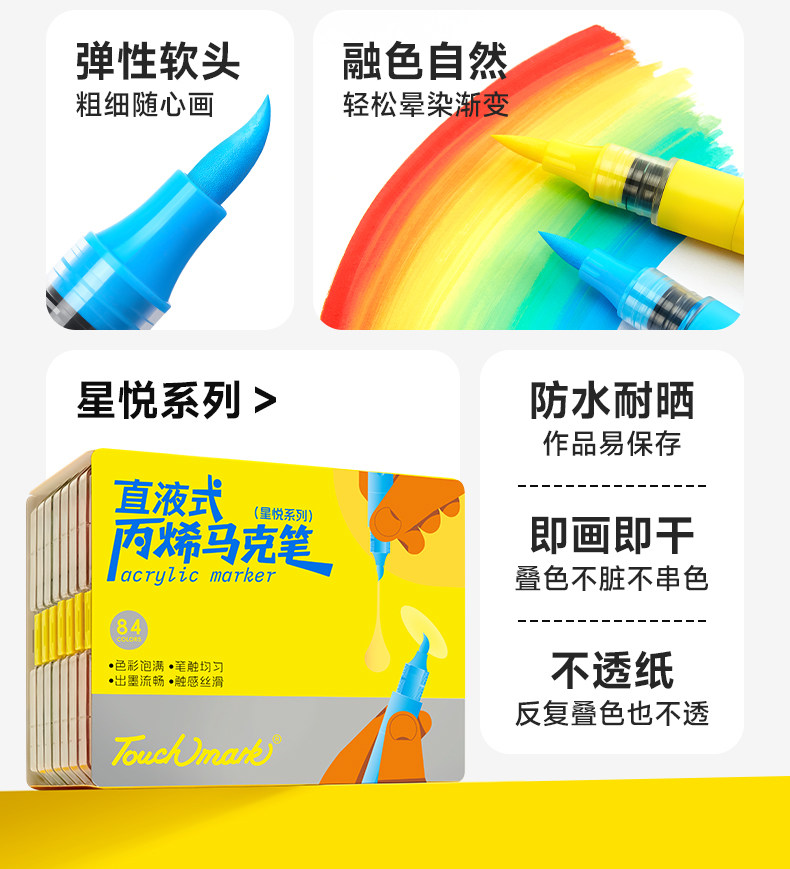 Taitchi Touchmark Xingyue Soft Tip Liquid Acrylic Marker Pen for Elementary School Art, 120 Colors Watercolor Pen for Children, Washable Colored Pen for Middle School Students, Acrylic Colored Drawing Pen