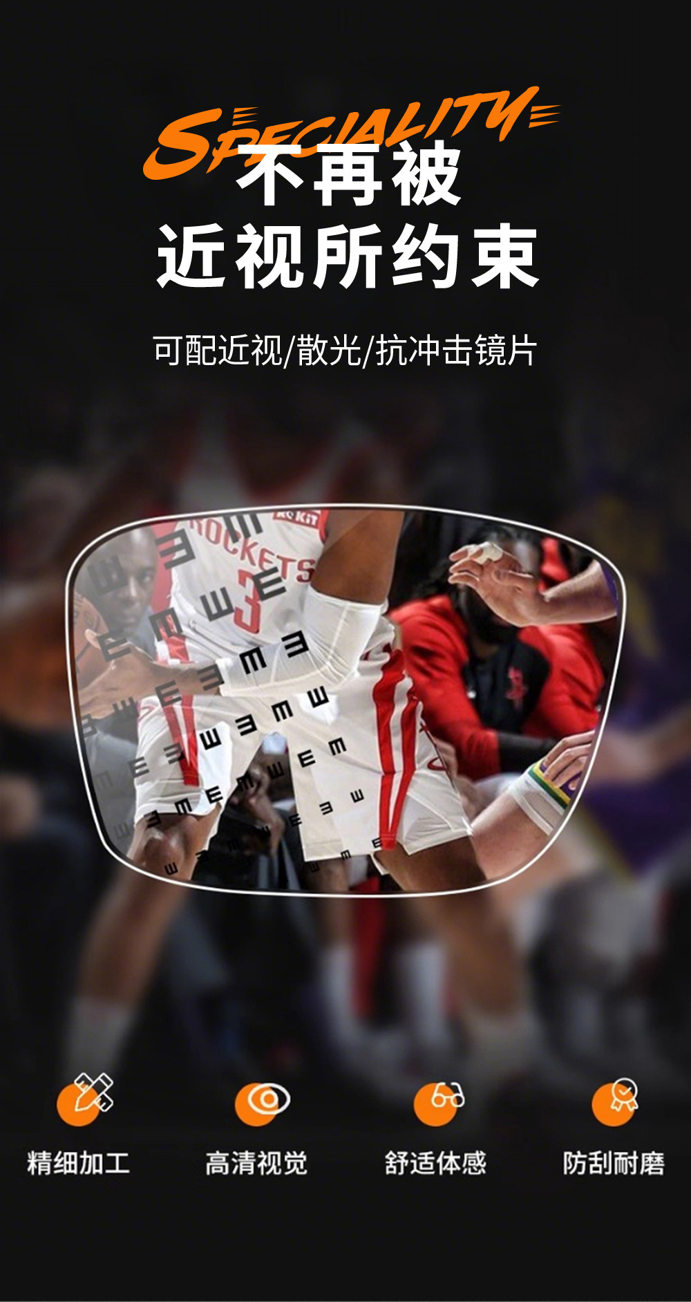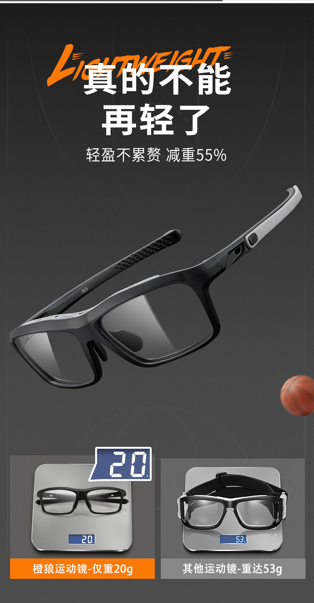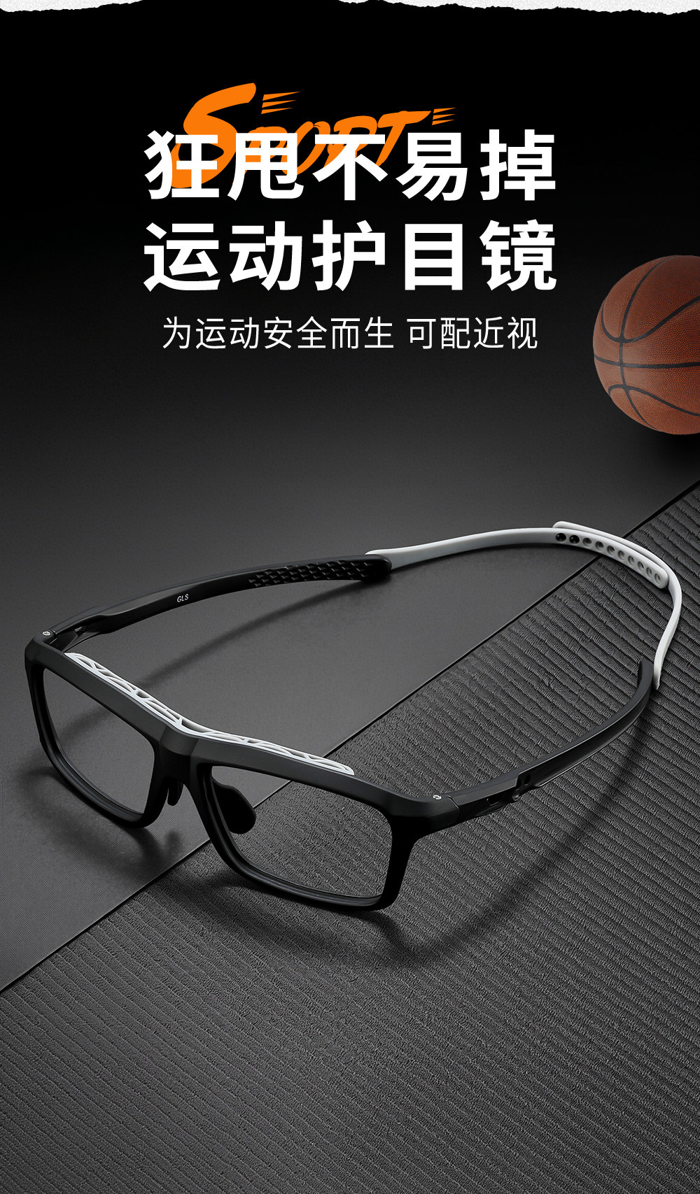 Professional Basketball Myopia Sports Glasses for Men, Can Be Fitted with Prescription Lenses, Anti-Collision, Anti-Fog, Special Anti-Falling Goggles for Playing Basketball
