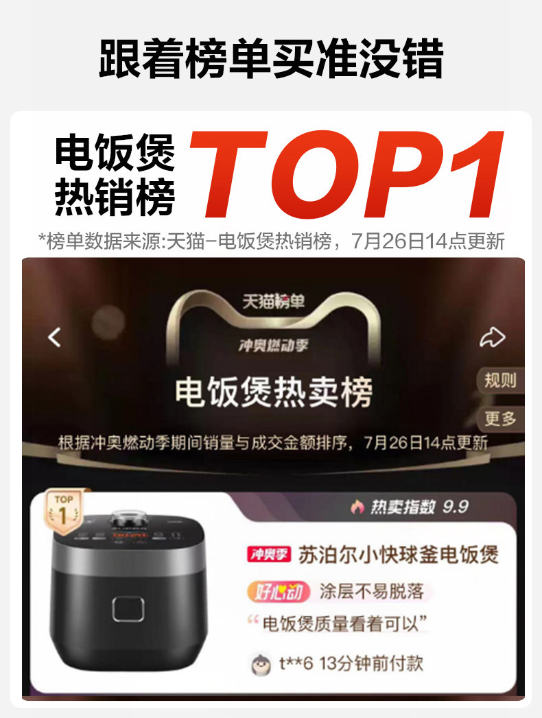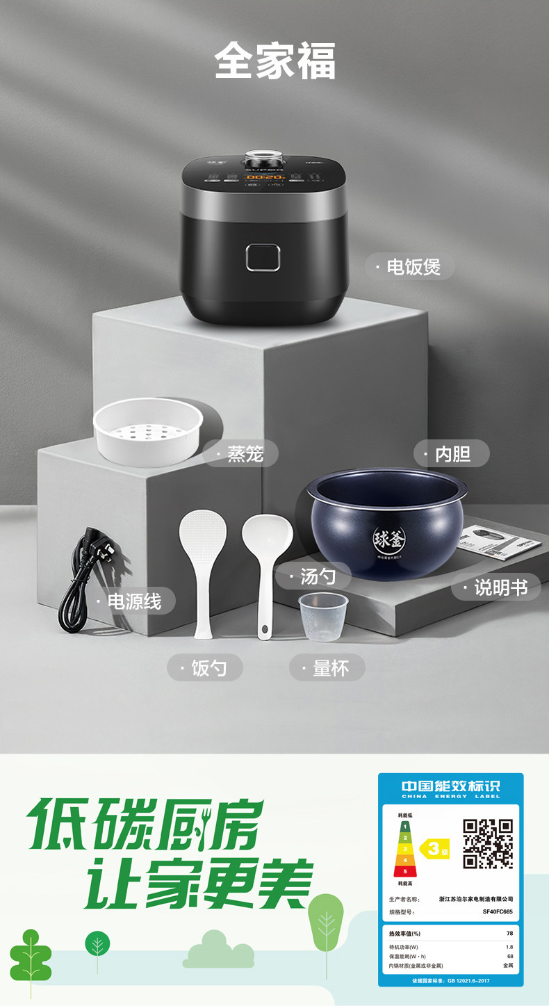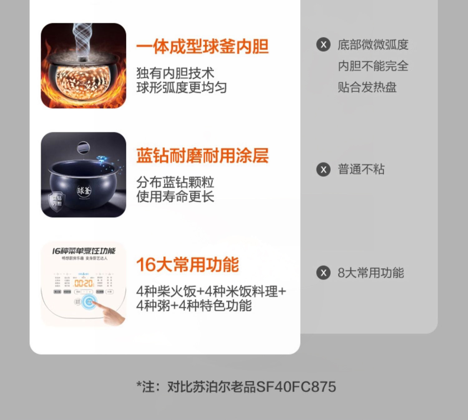 Supor Spherical Rice Cooker 4-Liter Smart Home Large-Capacity Multi-Function Smart Cooker for 3 to 6 People Official Flagship Store