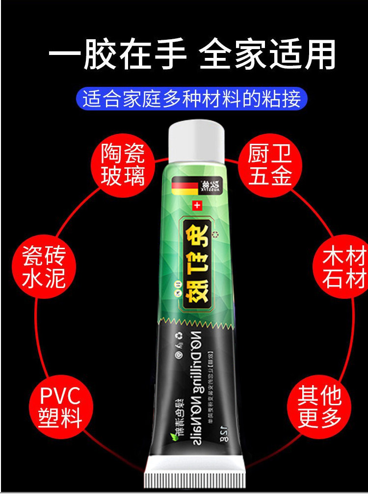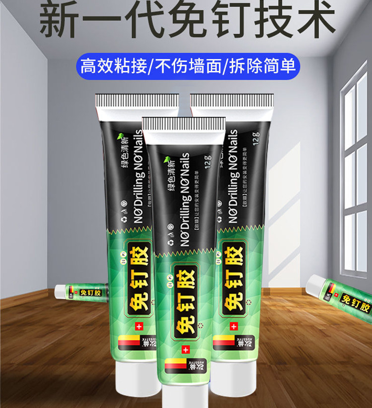 No-Nail Glue, Strong Adhesive, High Viscosity, Quick-Drying, No-Drill Adhesive for Wall, Bathroom, Kitchen, Shelf, Wall-Mounted, Nail-Free Adhesive