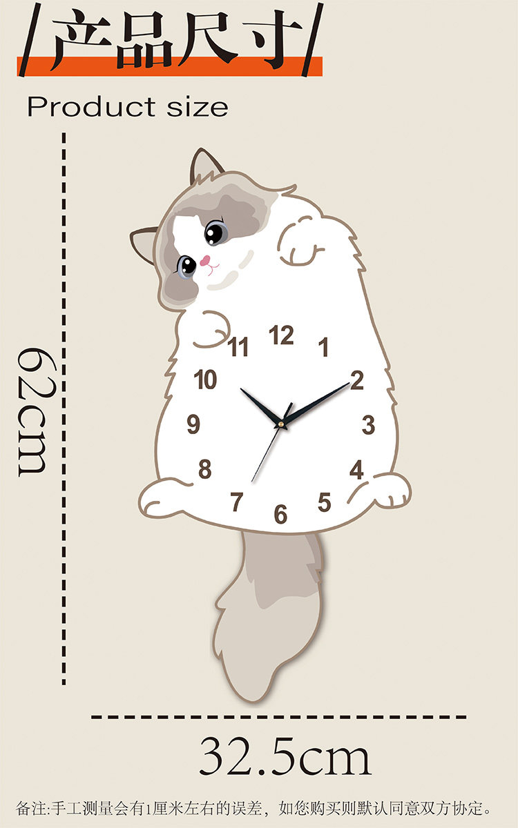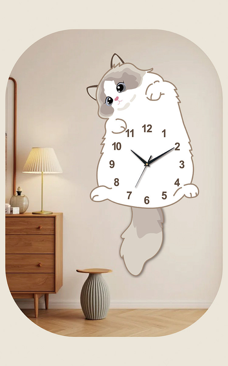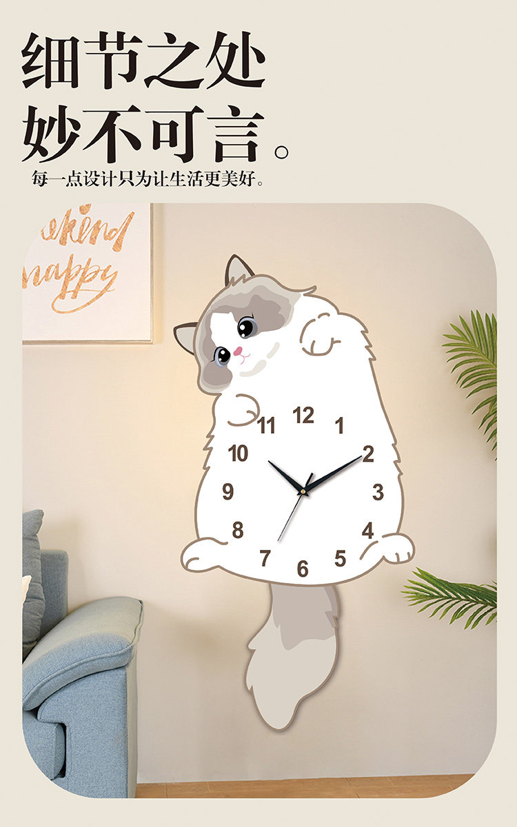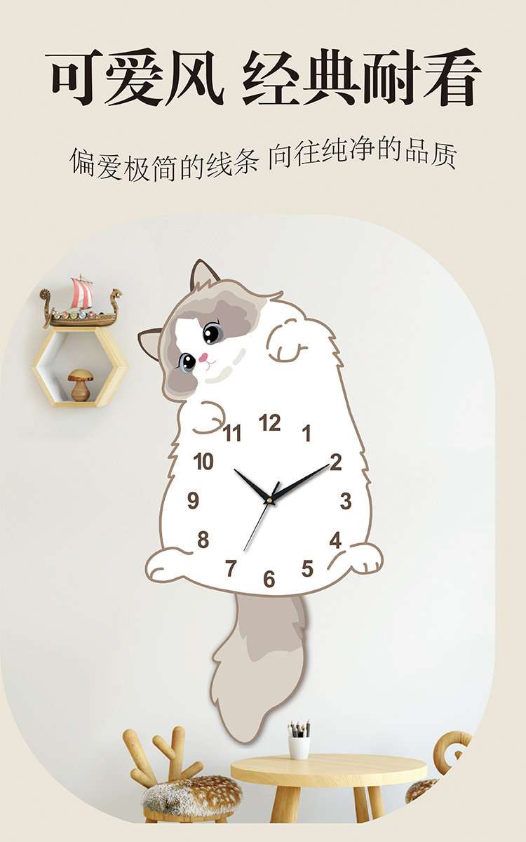 Cute New Ragdoll Cat Simple Swinging Clock Cartoon Living Room Home Decoration Creative Clock Wall-Mounted Silent