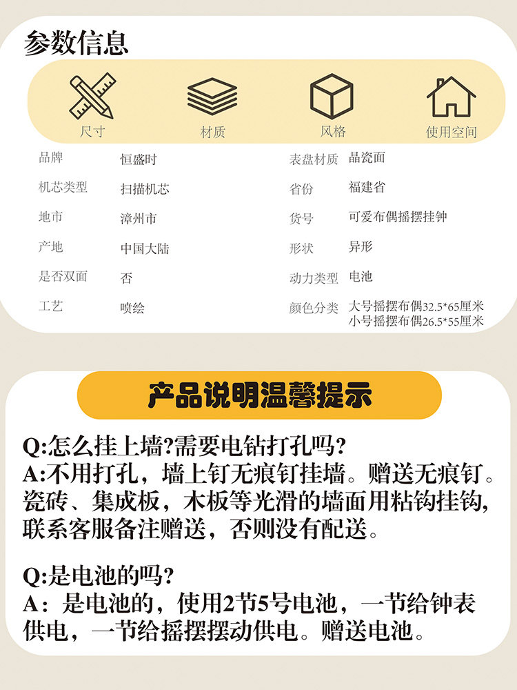 | Color Classification | Small Swing Puppet 26.5* 55cm,Large Swinging Puppet 32.5* 65cm |