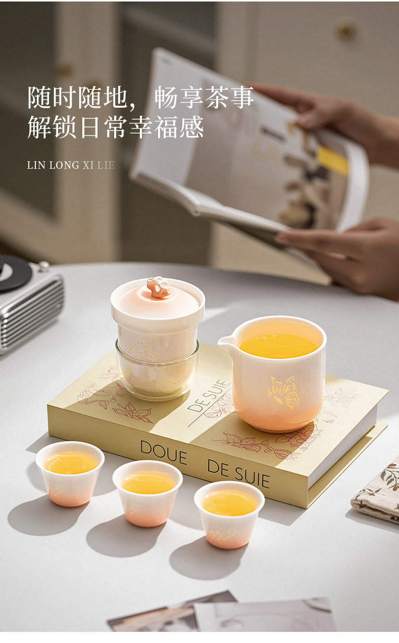 Tangfeng Portable Exquisite Travel Tea Set Outdoor Office Quick Cup White Porcelain for Women Single-Person Tea Brewing Use