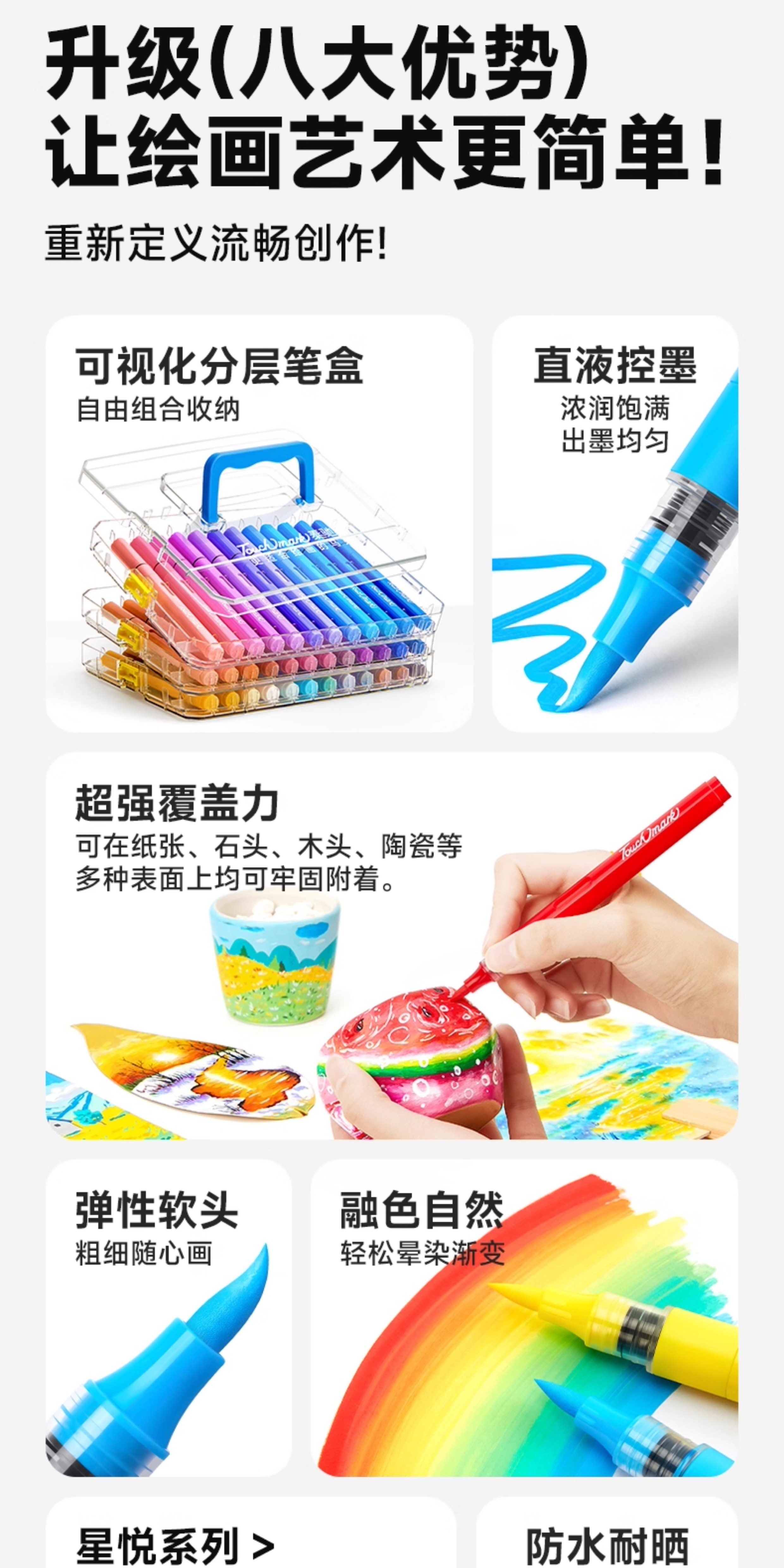 Touchmark Star Series Direct Liquid Soft Tip Acrylic Markers for Elementary School Art, 120 Colors Watercolor Pens, Washable Colored Pens for Children, Anime Hand-Drawn Color Pens for Middle School Students
