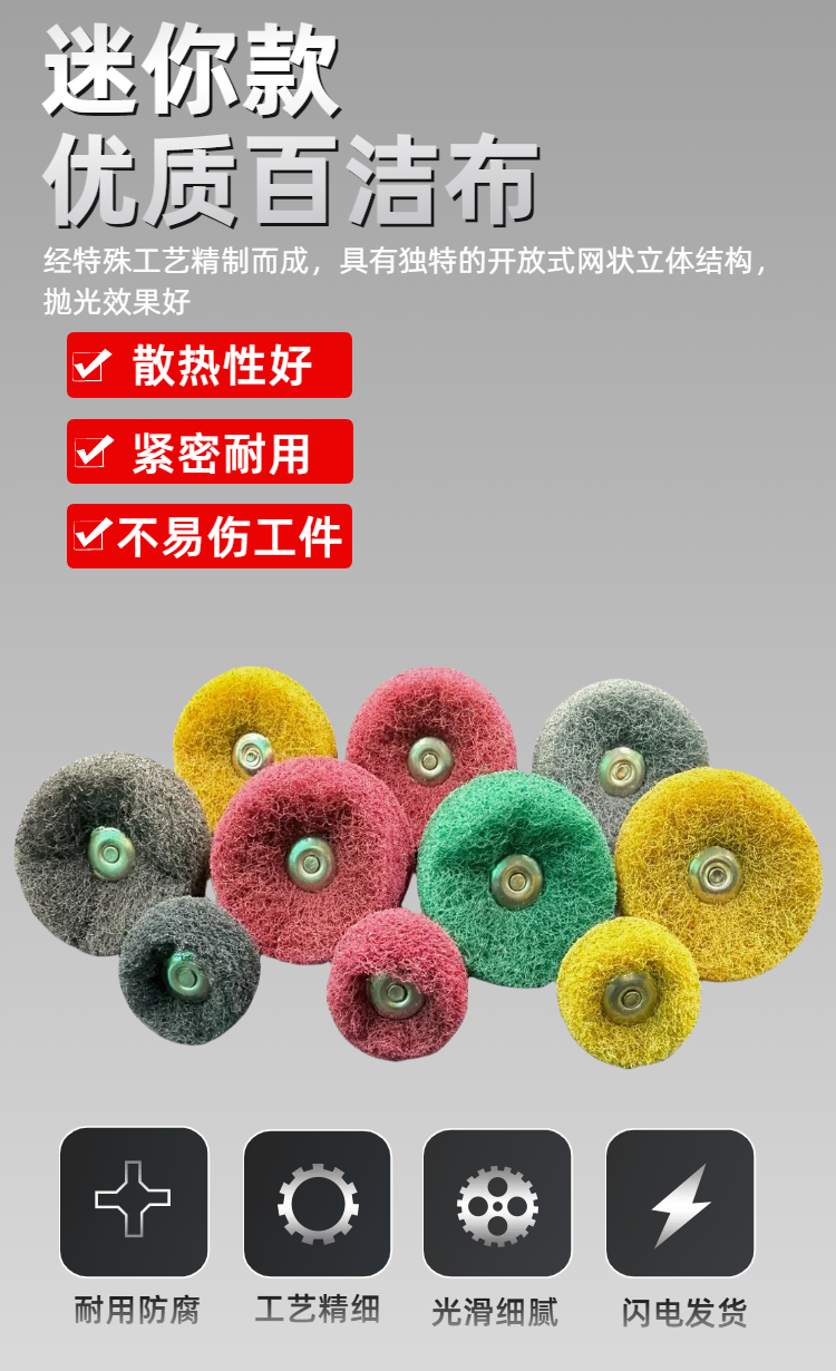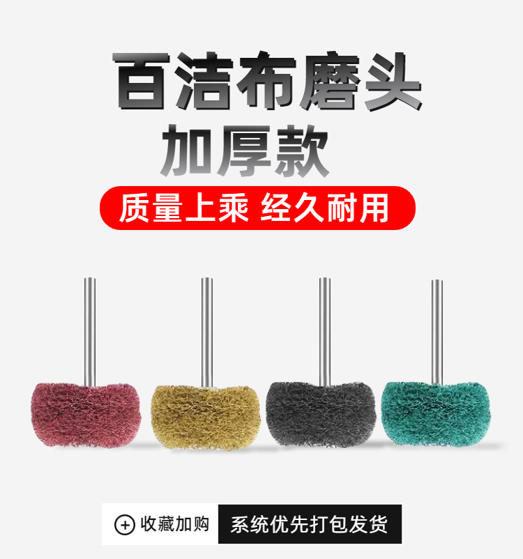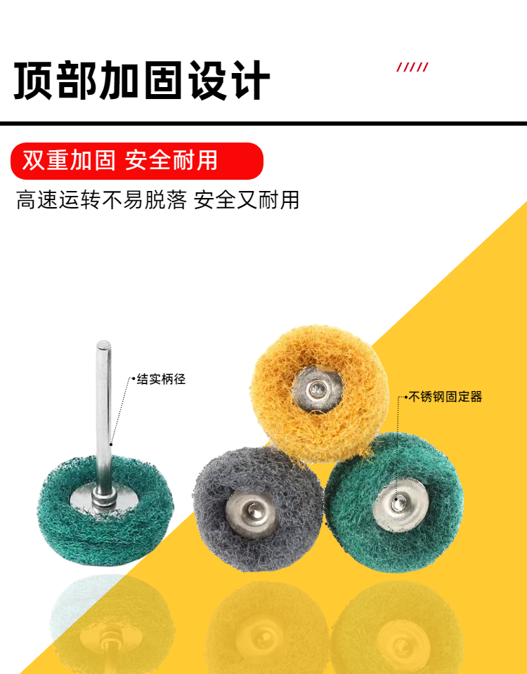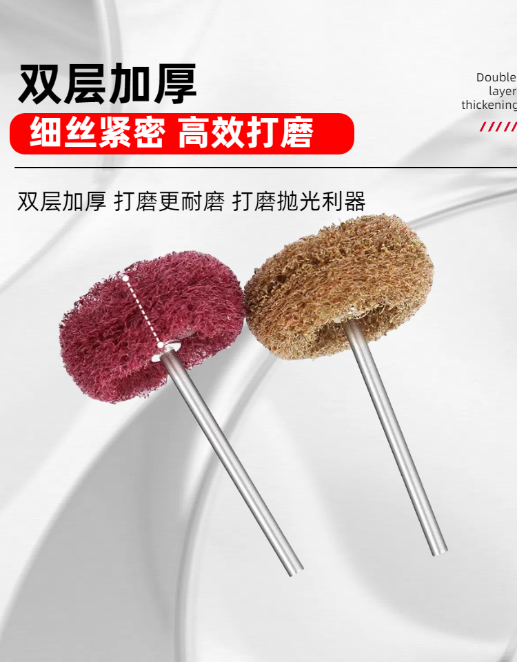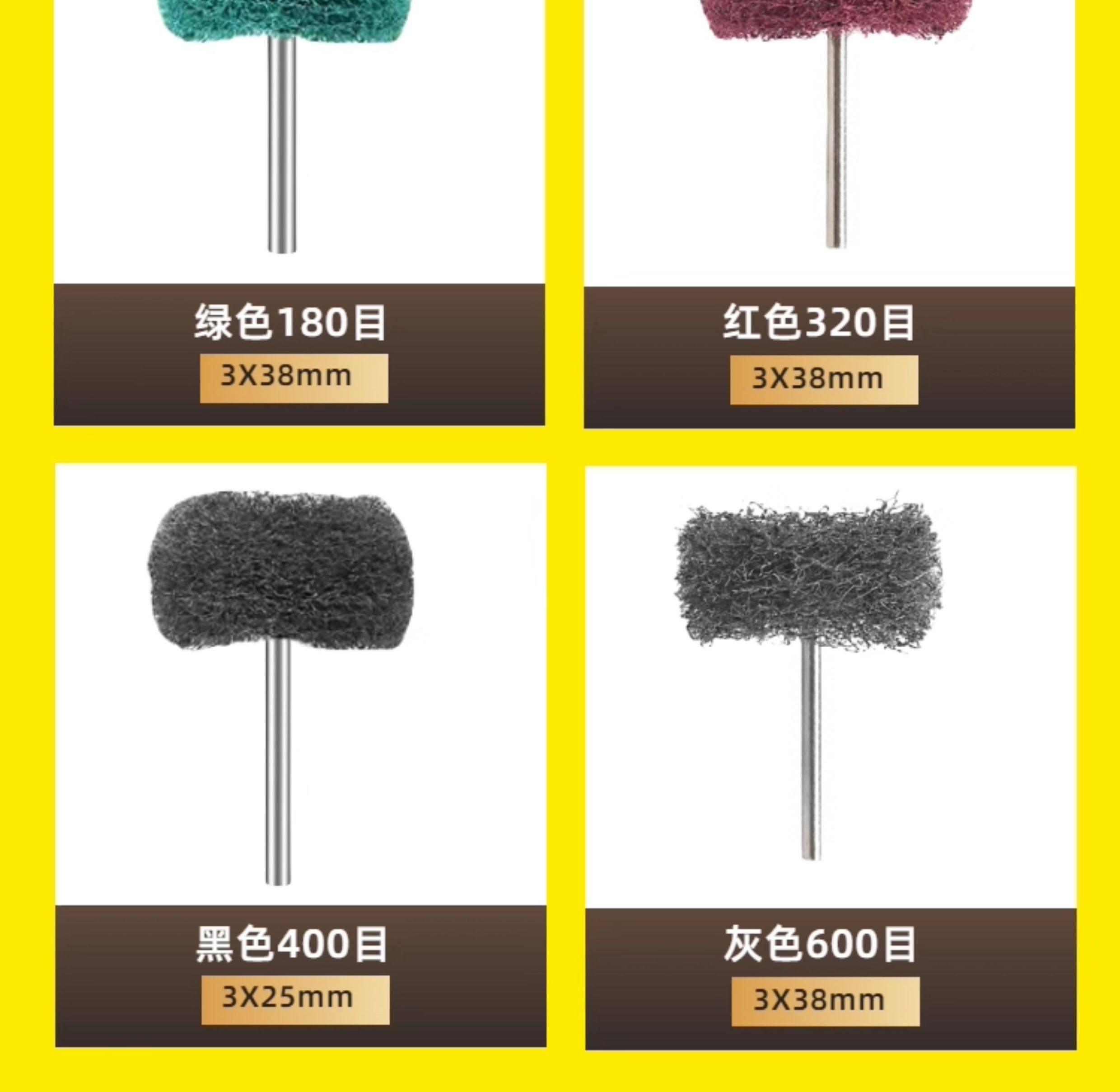 Small Mini Scouring Pad Grinding Head 3mm Shank Nylon Grinding Head with Handle Fiber Wire Wheel Double-Layer Scouring Pad Grinding Head