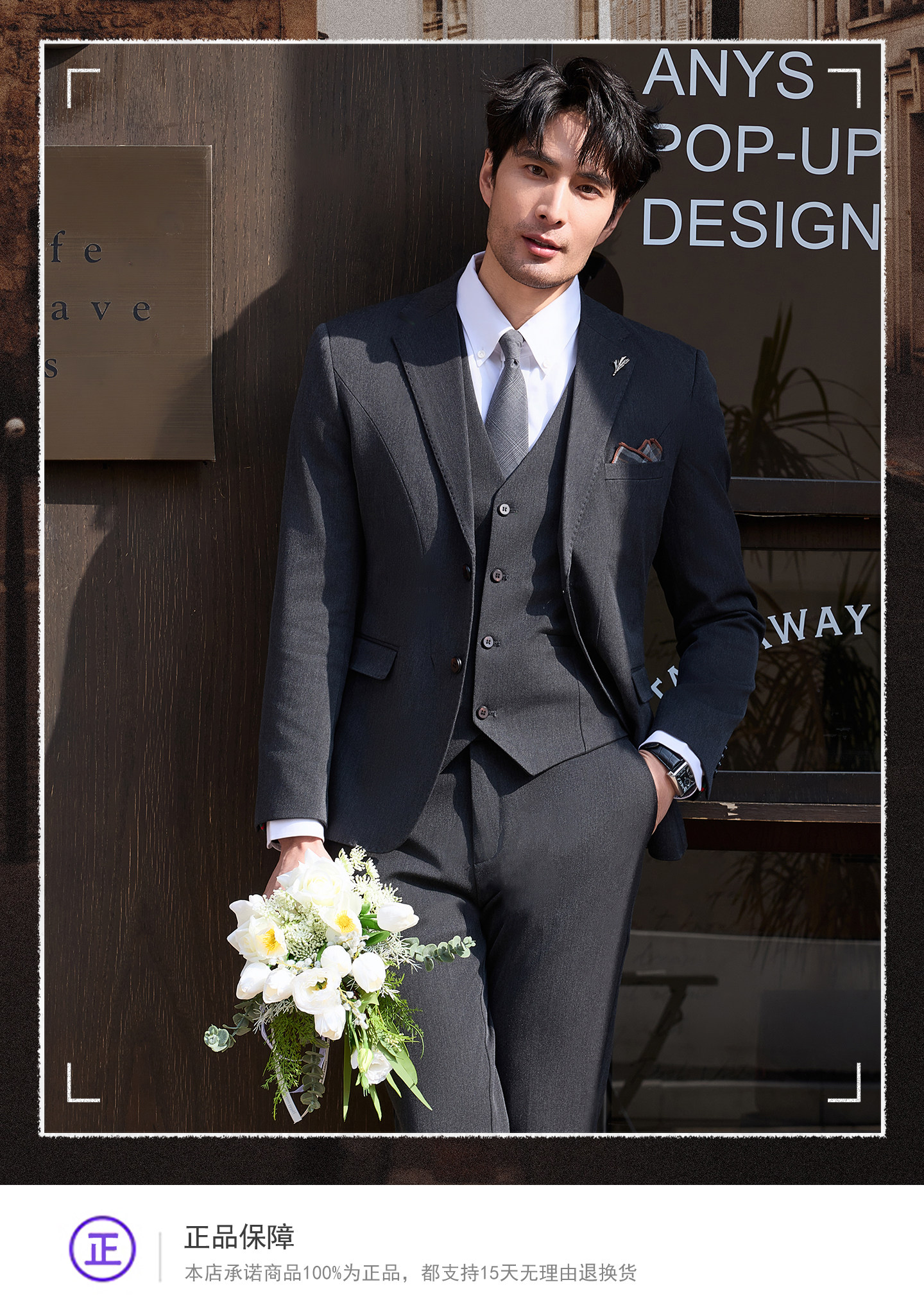 Groom's Suit Set, Men's Korean Style Business Casual Professional Formal Wear, High-End Slim Fit Handsome Wedding Suit