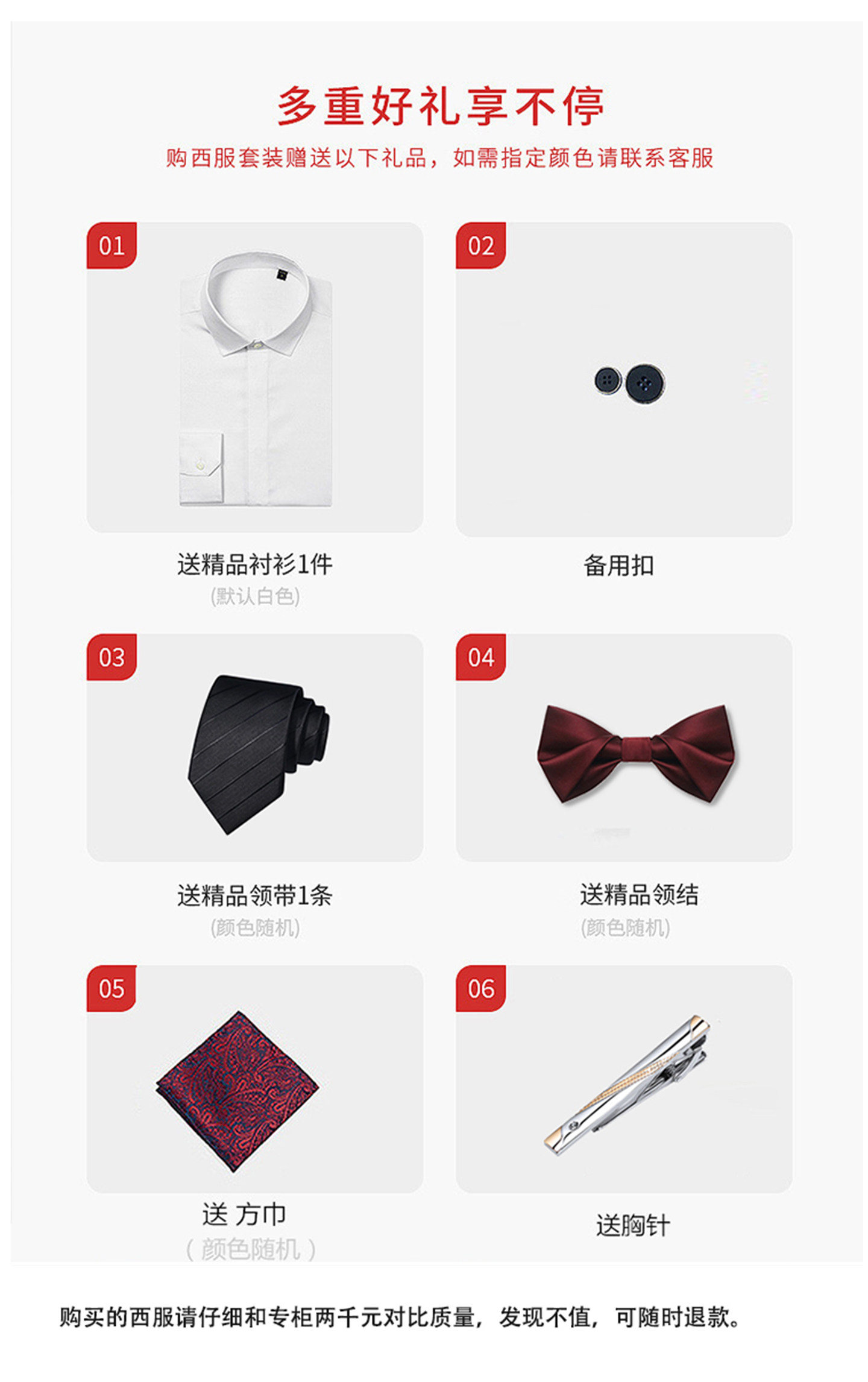 | Color | Dark Gray Double-Button (Top + Trousers) Comes with Shirt, Tie and Bow Tie,Medium Gray Double-Button (Top + Trousers) Comes with Shirt, Tie and Bow Tie,Light Gray Double-Button (Top + Trousers) Comes with Shirt, Tie and Bow Tie,Black Double-Breasted (Blazer + Dress Pants) Set - Includes Shirt, Tie, and Bow Tie,Navy Blue Two-Button Suit (Jacket + Dress Pants) - Includes Shirt, Tie, and Bow Tie,Dark Gray Double-Button (Jacket + Vest + Trousers) Comes with Shirt, Tie and Bow Tie,Medium Gray Double-Button (Jacket + Vest + Trousers) Comes with Shirt, Tie and Bow Tie,Light Gray Double-Button (Jacket + Vest + Trousers) Comes with Shirt, Tie and Bow Tie,Black Double-Breasted Set (Jacket + Vest + Dress Pants) - Includes Shirt, Tie, and Bow Tie,Navy Blue Double-Breasted Suit (Jacket + Vest + Dress Pants) - Includes Shirt, Tie, and Bow Tie |