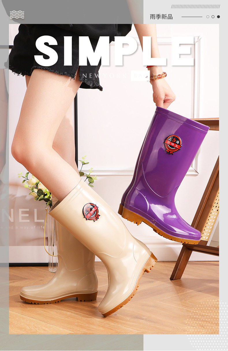 Lao Bao Wang 43 Extra Large Women's High-Top Rain Boots Non-Slip Oxford Sole Kitchen Waterproof Work Rubber Shoes Wear-Resistant Water Shoes