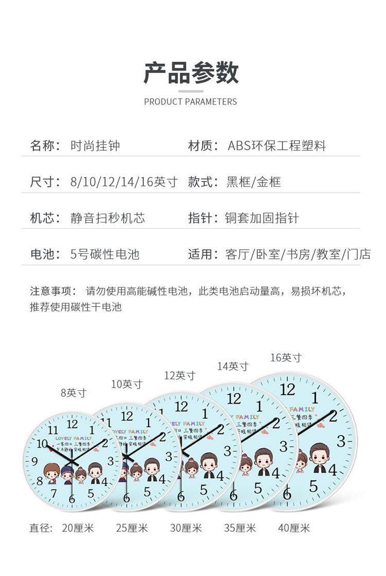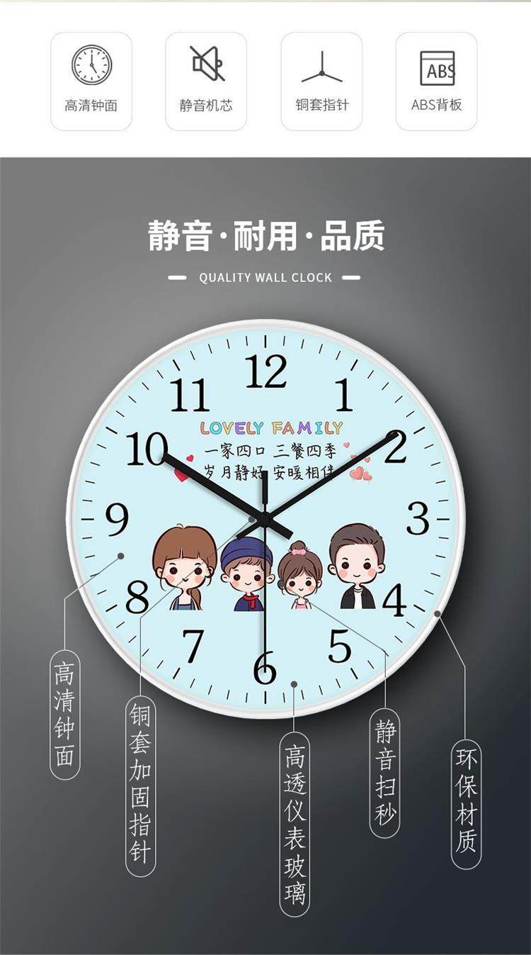 Tianjixing Silent Family Wall Clock Family Bedroom Clock Living Room Creative Warm Cartoon Quartz Clock