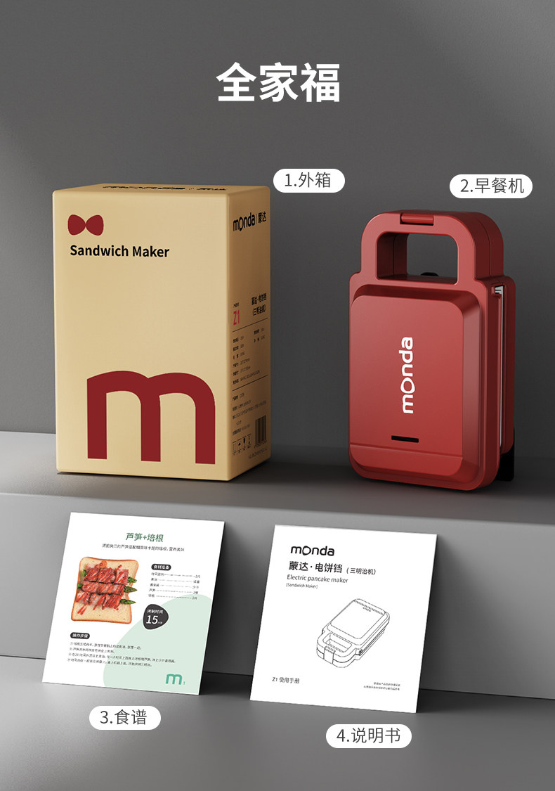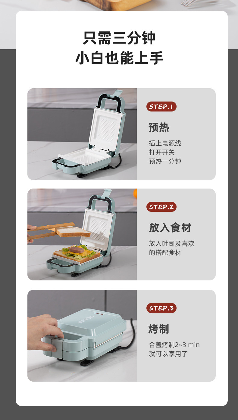 Monda Multifunctional Sandwich Maker Small Portable Grill Double-Sided Heating Popular Household Breakfast Machine