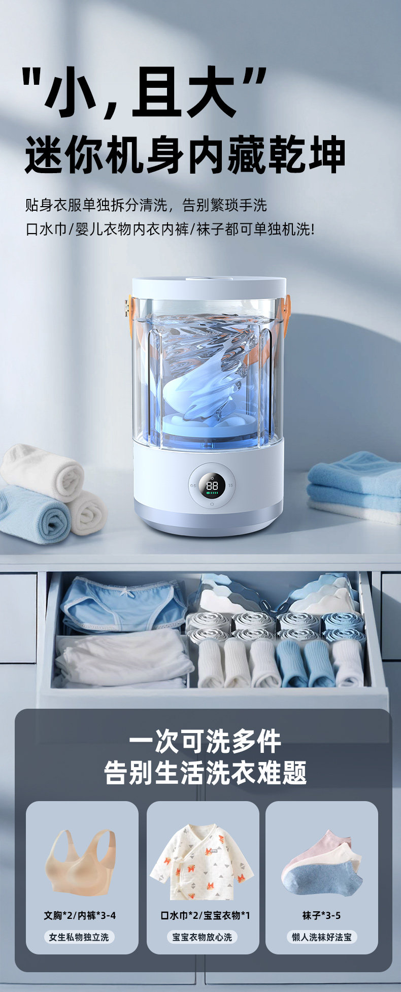 | Model | Installation-Free Ai Smart Washing Underwear and Antibacterial Washing Machine |