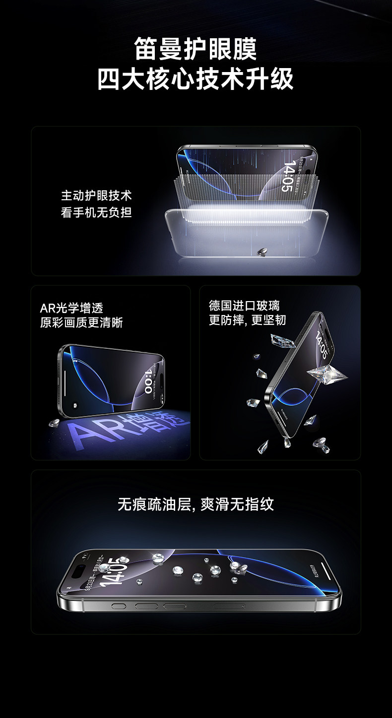 [Rhein Eye Protection] Diman Tempered Glass Screen Protector for Apple 17 Pro Max, iPhone 16 Pro Eye Protection, 15 Plus Phone Film, New Anti-Blue Light, Anti-Peeping, 12 Protection, 14 Full Screen, 11, 13X