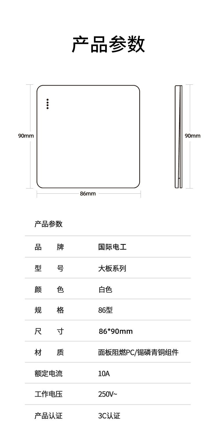 International Electric White Single-Gang Single-Pole Light Switch Panel, 86 Type Large Panel, Household Single-Gang Single-Pole Single-Control