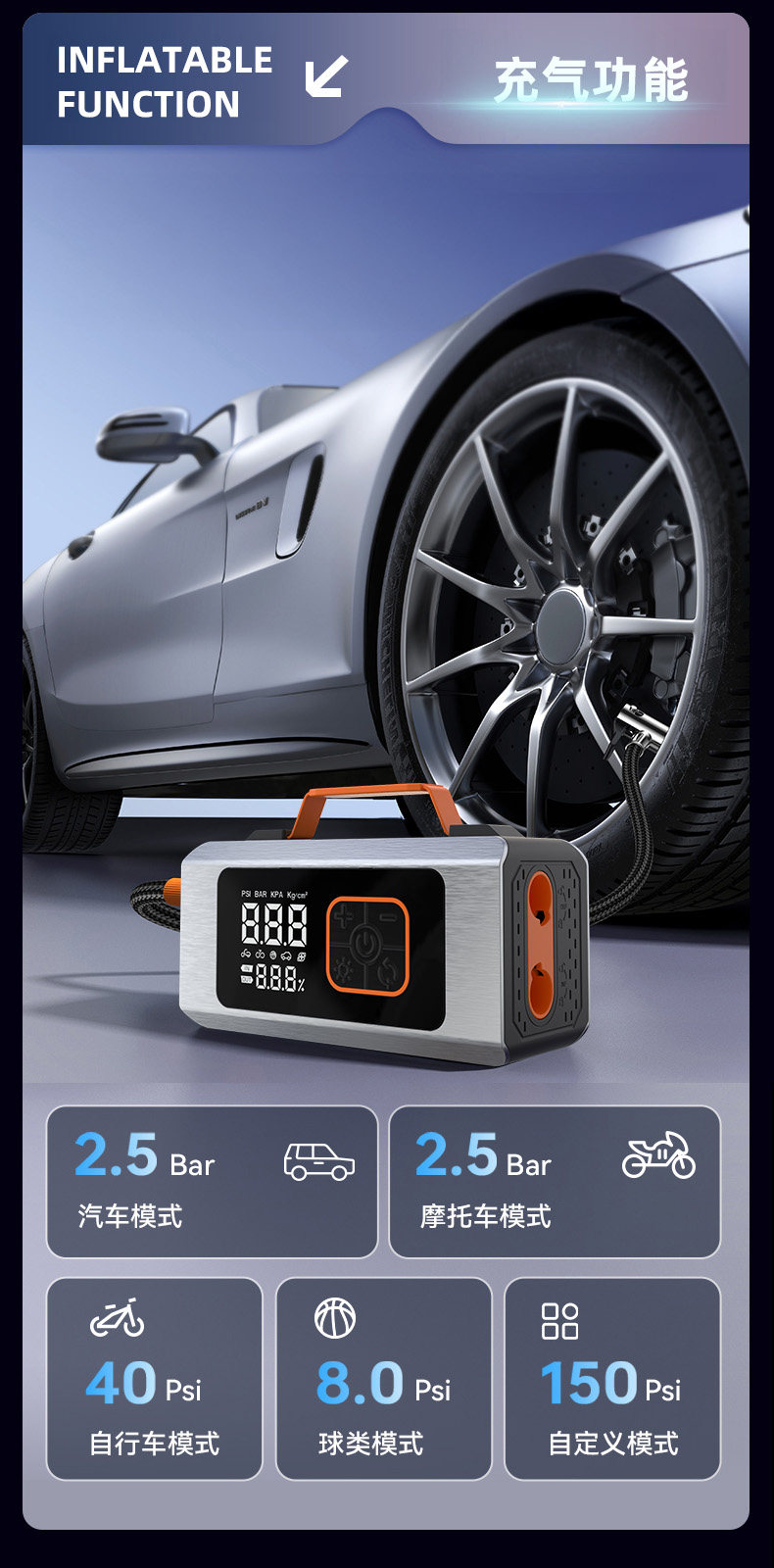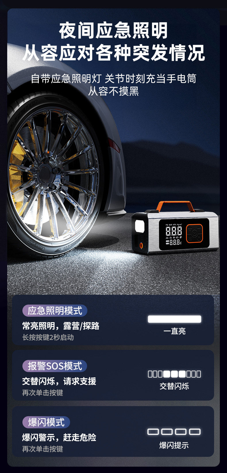 Car Air Pump, Electric Tire Inflator, Emergency Jump Starter, Special Power Bank for Jump Starting, Ignition Tool