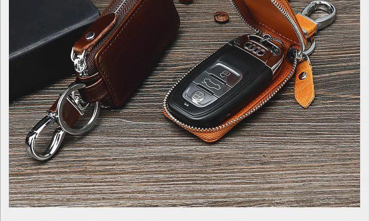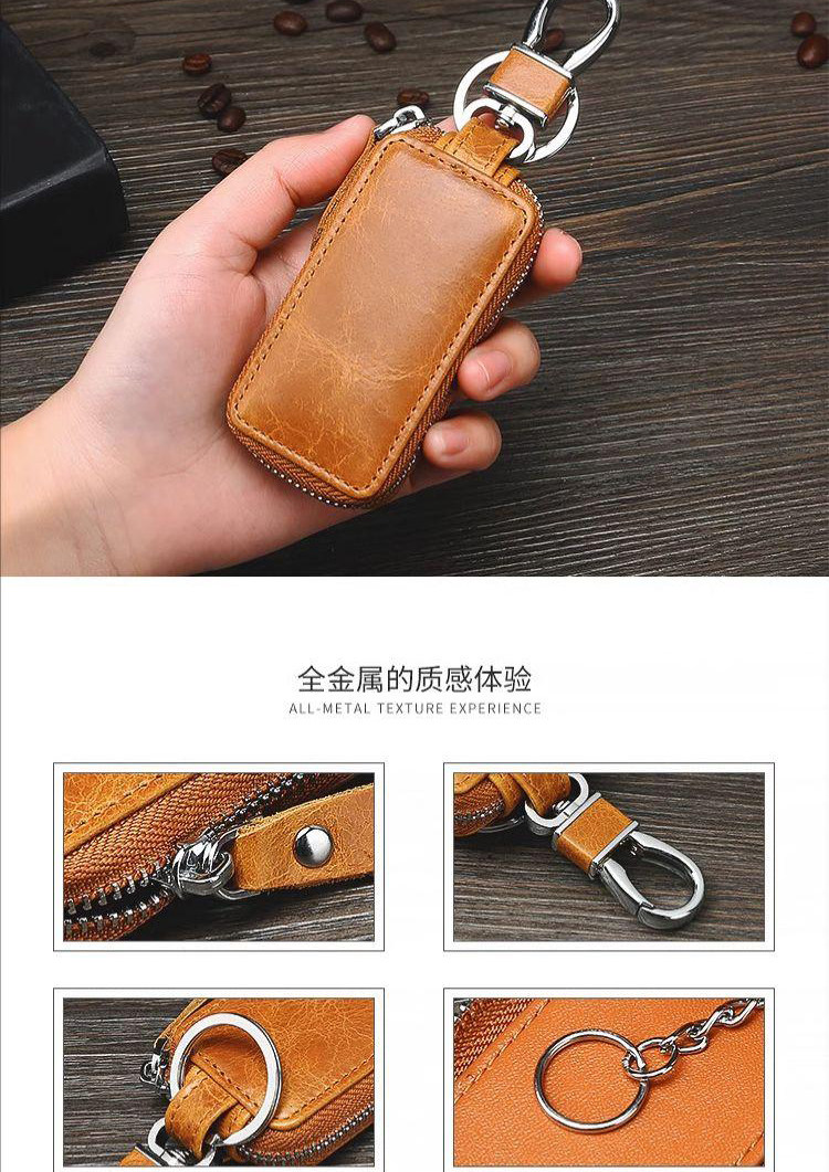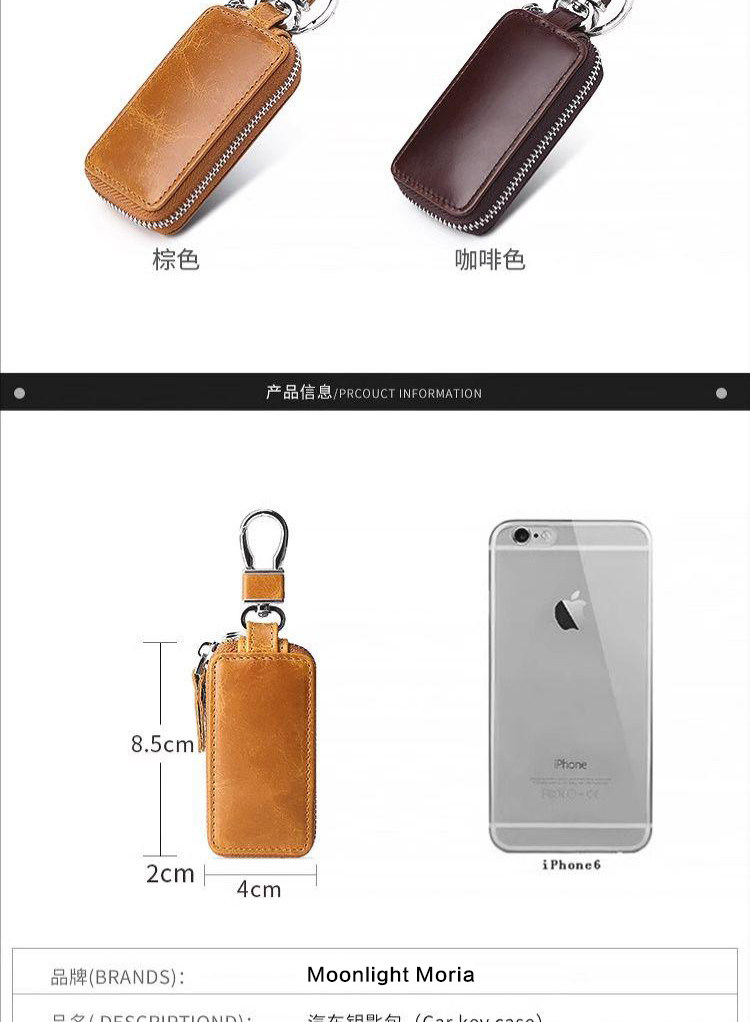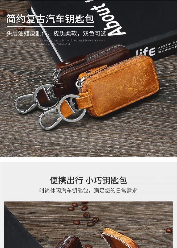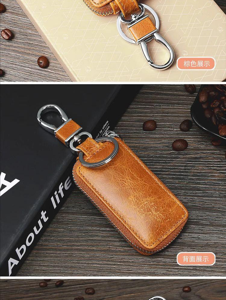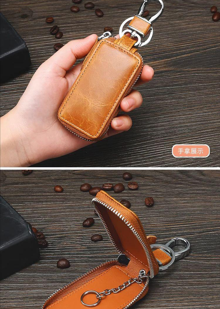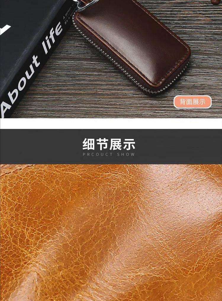 New Genuine Leather Car Key Case, European and American Retro Style, Waist-Hanging, Keyless Entry Remote Control Key Protective Cover for Men