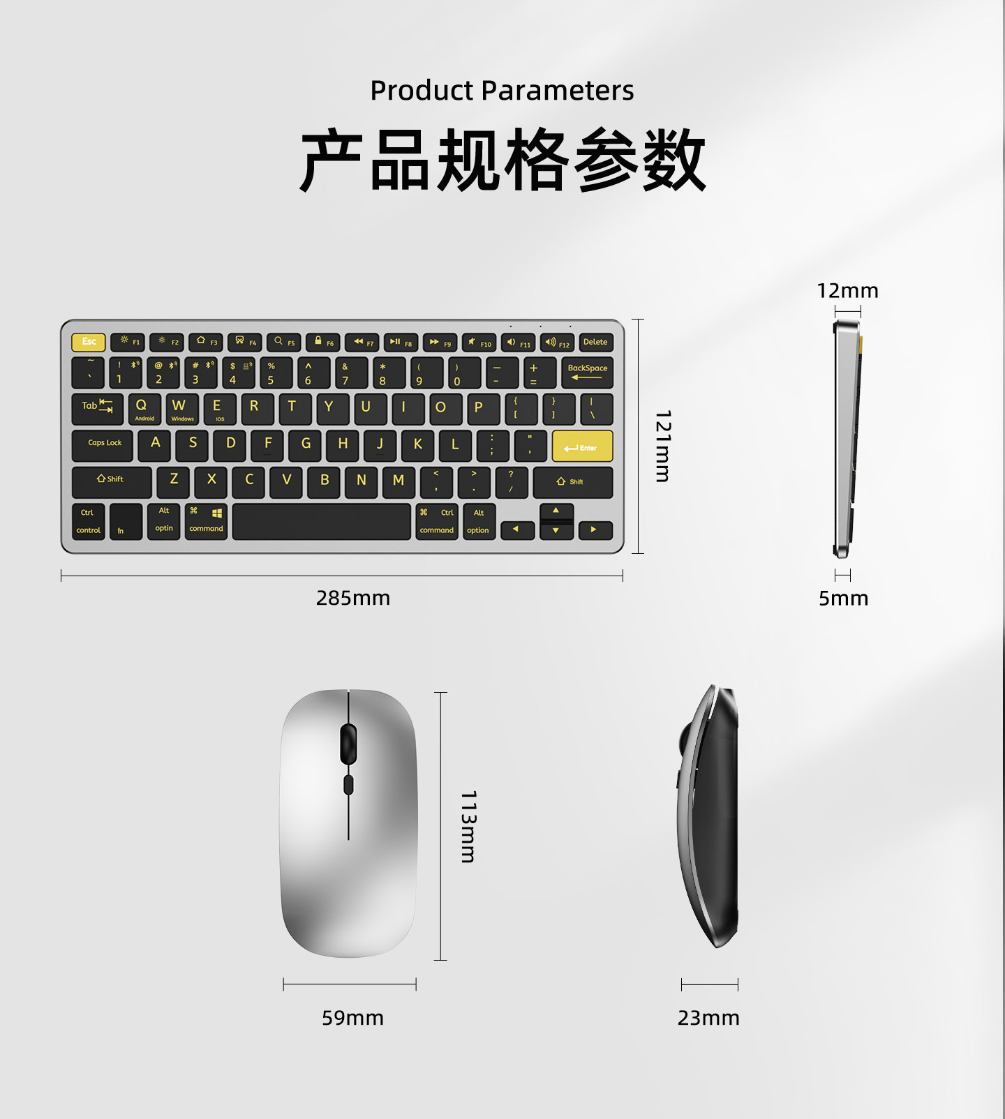 Mini Bluetooth Wireless Keyboard and Mouse Set iPad Tablet Mobile Phone Computer Notebook Office Silent Rechargeable