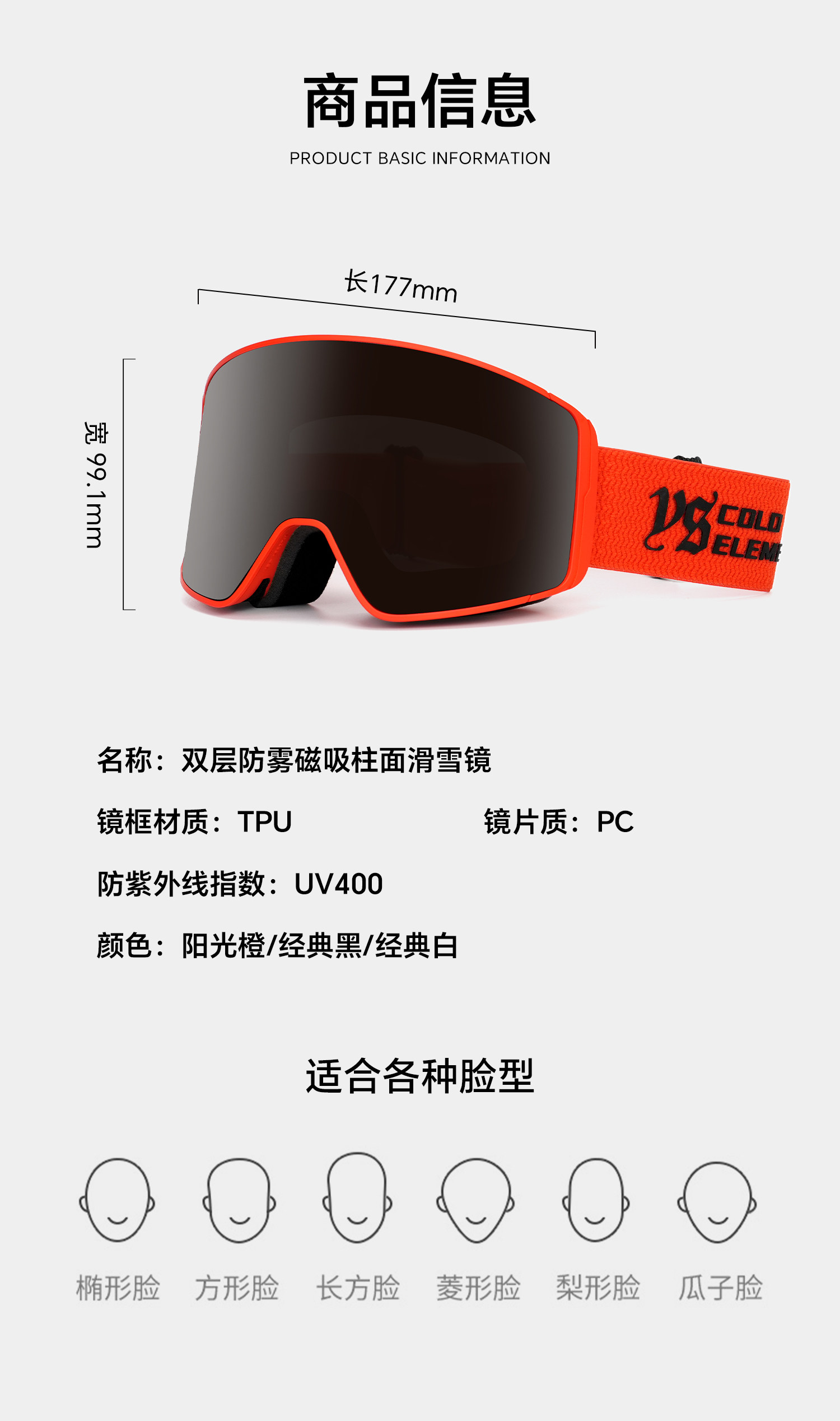 | Color Classification | Sunshine Orange,Classic Black,Classic White,Sunshine Orange + Replacement Lenses,Classic Black + Replacement Lenses,Classic White + Replacement Lenses,Sunshine Orange + Ski Helmet,Classic Black + Ski Helmet,Classic White + Ski Helmet |