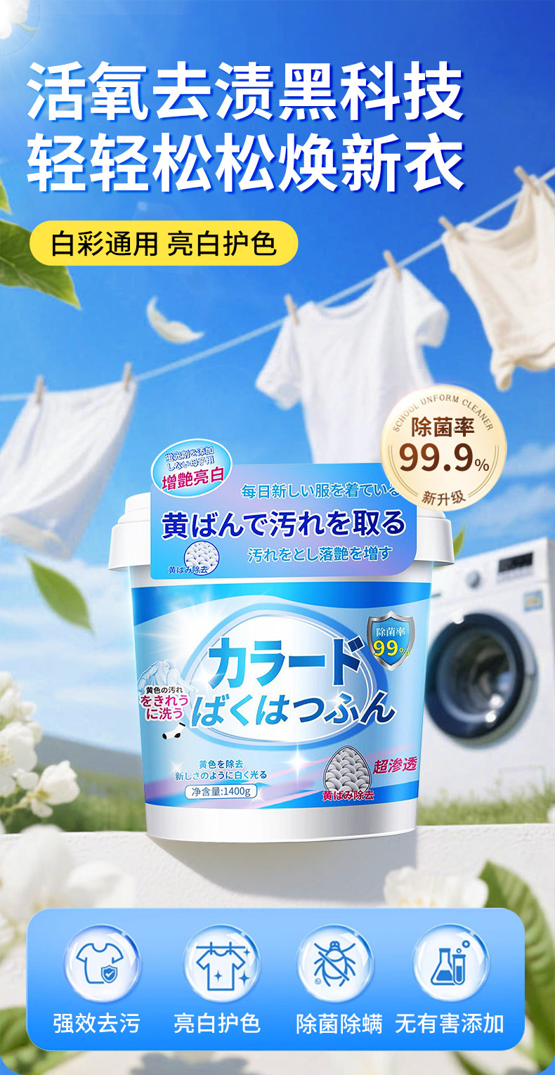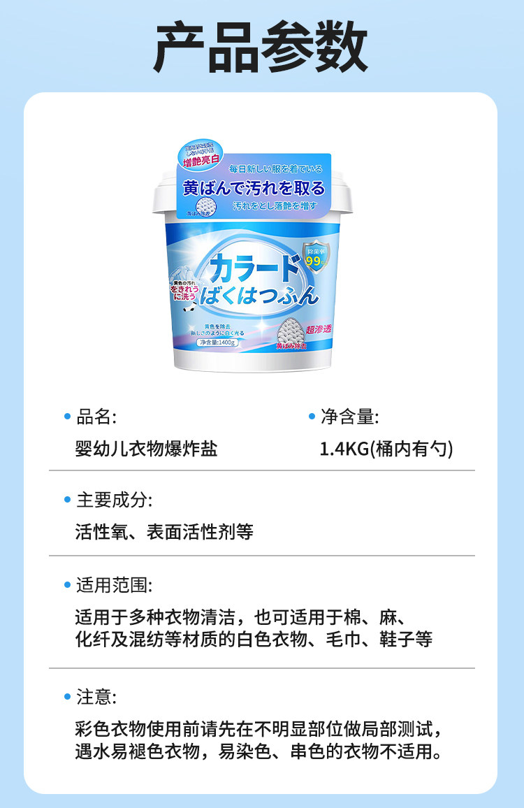 Explosive Salt Laundry Stain Remover, Strong Stain Removal, Whitening, Baby Clothes Bleaching, Stain Removal Magic Tool, Official Genuine Product