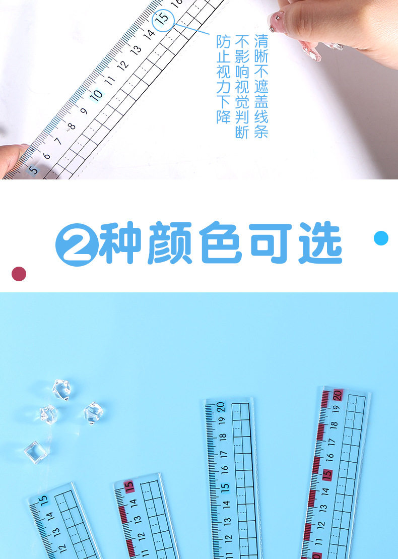 Anti-Myopia Ruler for Primary School Students, Special for Second-Grade Children, Eye-Protecting Ruler with Wavy Lines, Transparent High-Quality Student Ruler, 15cm 20cm Scale Ruler for First-Grade Students, Drawing Ruler for Middle School Students