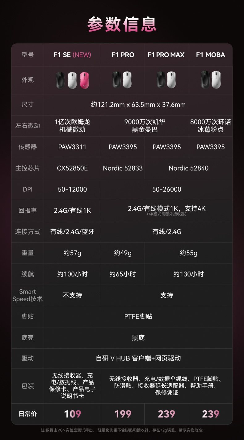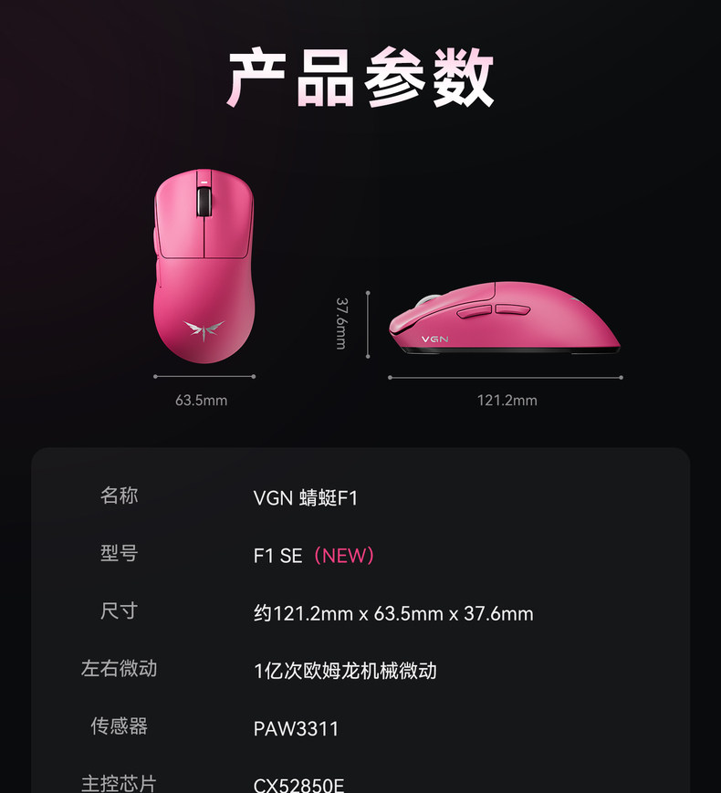 | Color Classification | Vgn Dragonfly F1 Se Rose Red,Vgn Dragonfly F1 Se White,Vgn Dragonfly F1 Se Black,Vgn Dragonfly F1 Se Rose Red + Competition Mouse Pad,Vgn Dragonfly F1 Se White + Competition Mouse Pad,Vgn Dragonfly F1 Se Black + Competition Mouse Pad,Dragonfly F1 Pro White + 4K Receiver,Dragonfly F1 Pro Black + 4K Receiver,Dragonfly F1 Pro Max White + 4K Receiver,Dragonfly F1 Pro Max Black + 4K Receiver,Dragonfly F1 Moba White + 4K Receiver,Dragonfly F1 Moba Black + 4K Receiver |