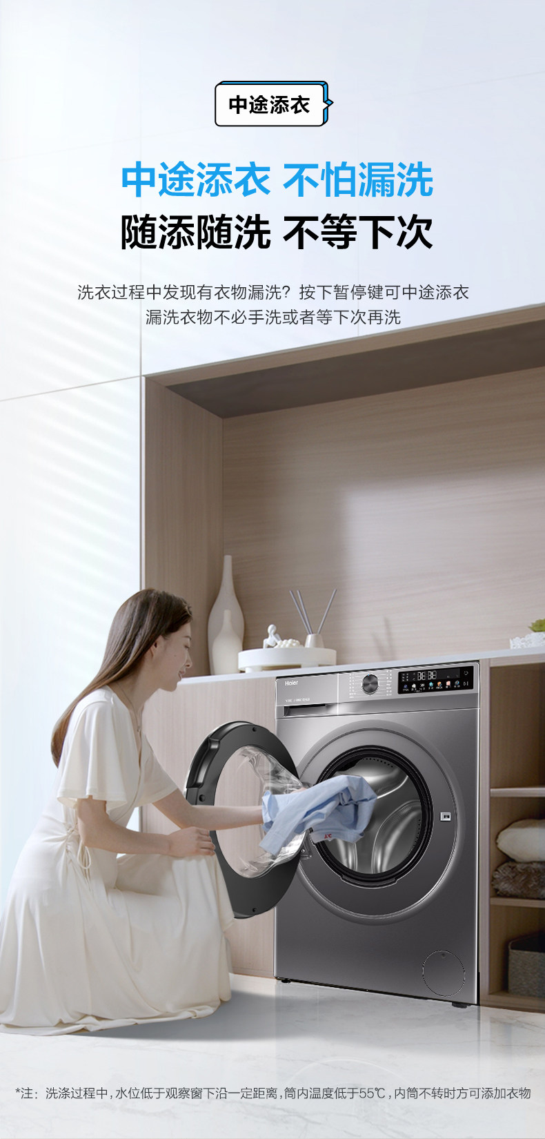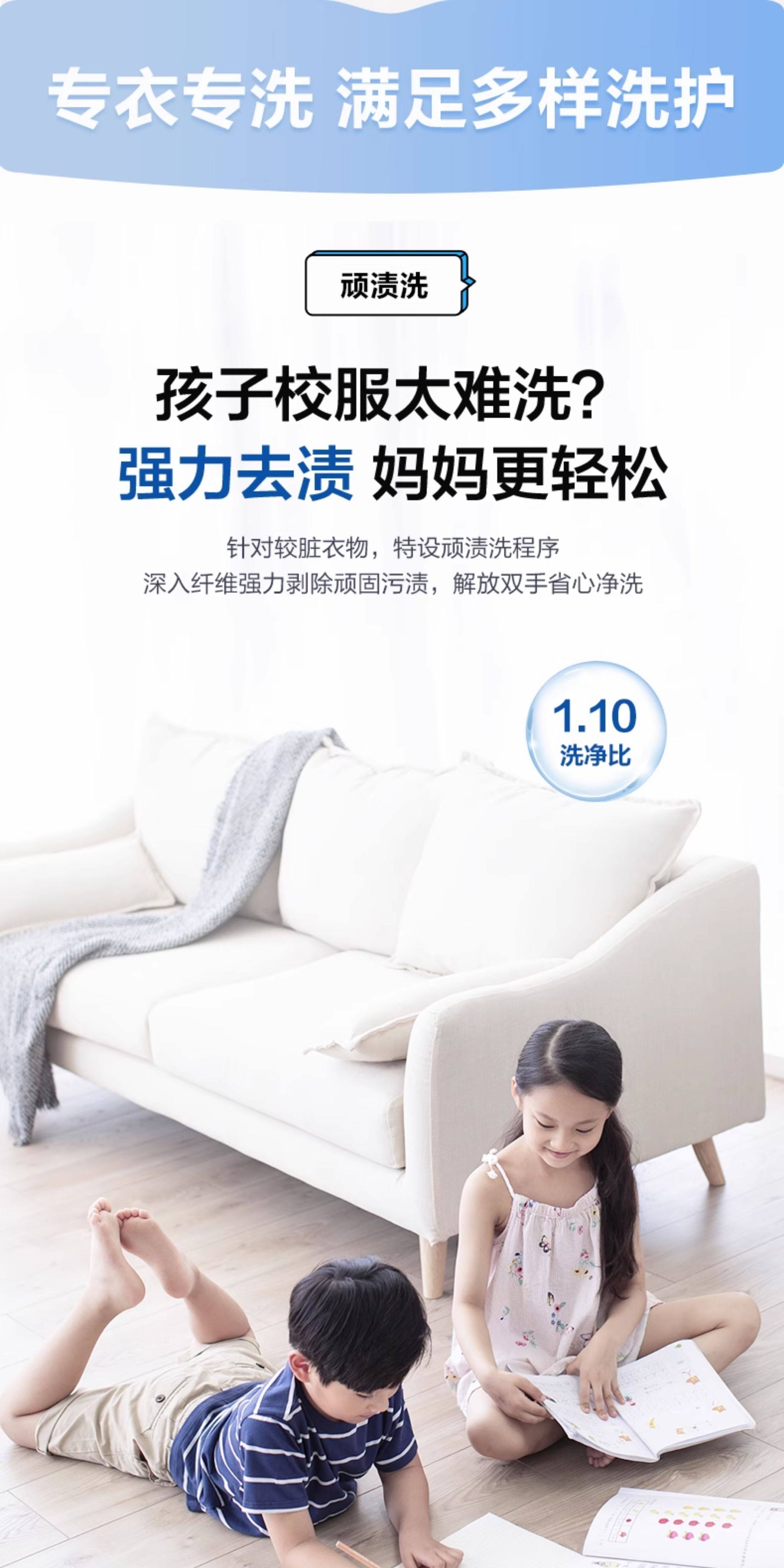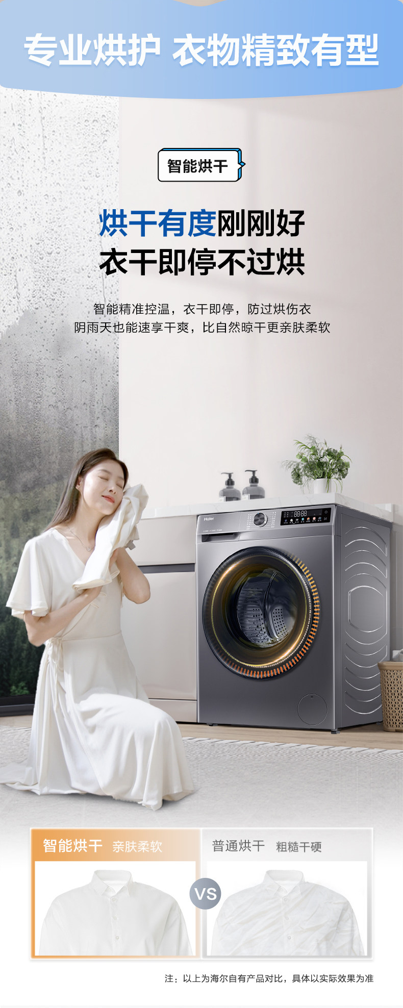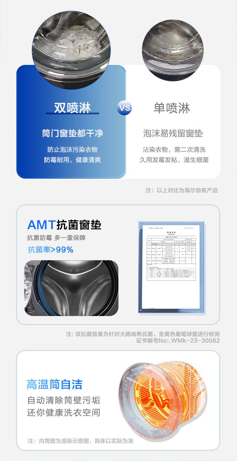 1:1 Washing Capacity, Haier 10kg Ultra-Thin Inverter Washing and Drying Integrated Washing Machine for Home Use, Sterilization, Dual Spray H507S
