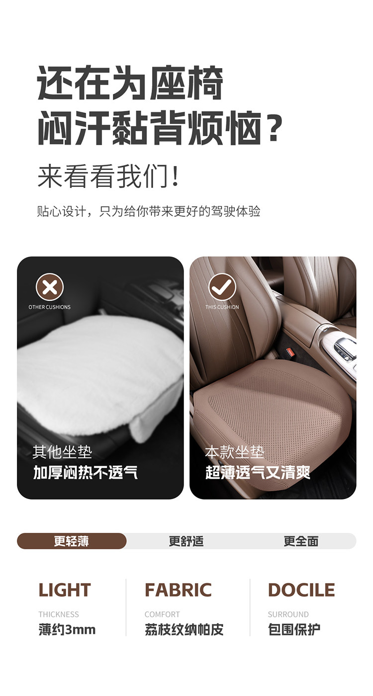 Car Seat Cushion Single Piece Driver's Seat Cushion All-Season Universal Thin Nappa Leather Seat Cushion Full Cover Seat Cover