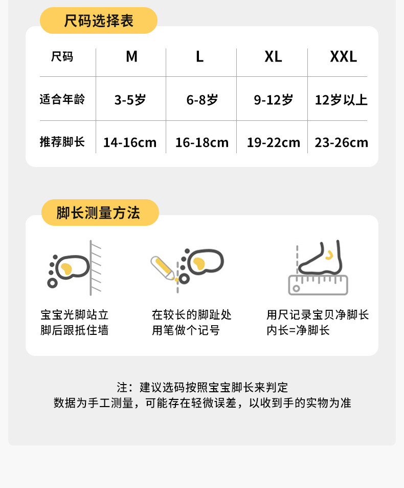 | Applicable Age | M Size: Recommended for Ages 3-5 Years Old. Suggested Shoe Size: Us 10-13 (Eu 22-27). [Pure Cotton, Anti-Pilling],L Size: Recommended for Ages 6-8, with a Shoe Size Recommendation of Us 10-13 (Eu 28-33). [Moisture-Wicking & Odor-Resistant],XL Size Recommended for 9-12 Years Old, Recommended Shoe Size 33-36 [Durable and Not Easy to Break],XXL Size Recommended for Ages 12 and Up. Recommended Shoe Size: Us 6 - Us 9 (Eu 36-40). [Cloud-Soft Combed Cotton] |