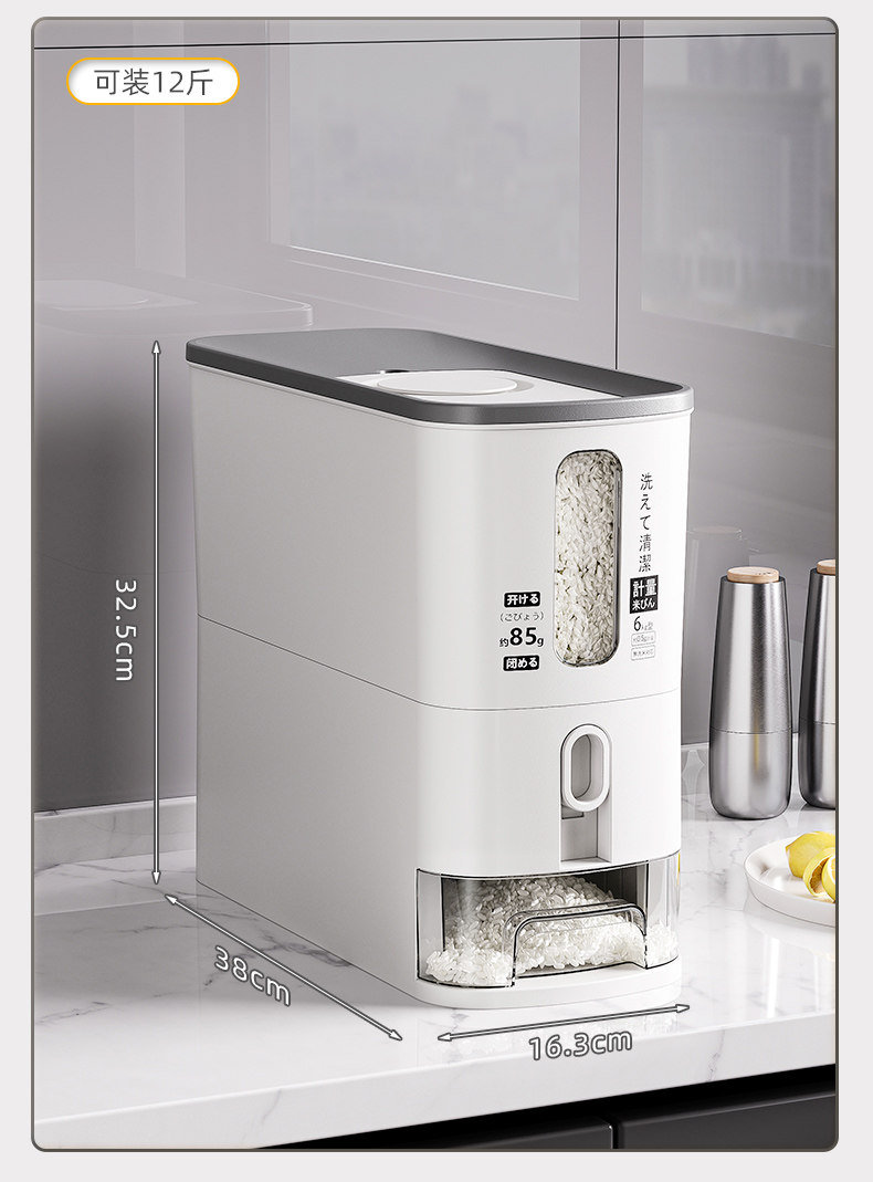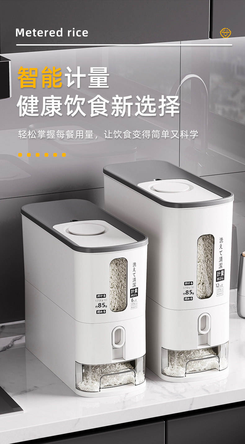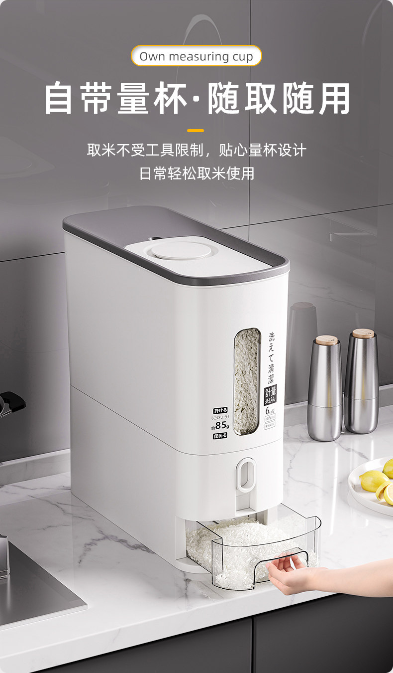 Japanese Imported Measuring Rice Container for Home Use, 2025 New Model Rice Storage Container, Quantitative Rice Dispenser, Press-Type Rice Bin