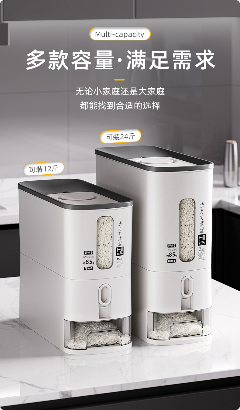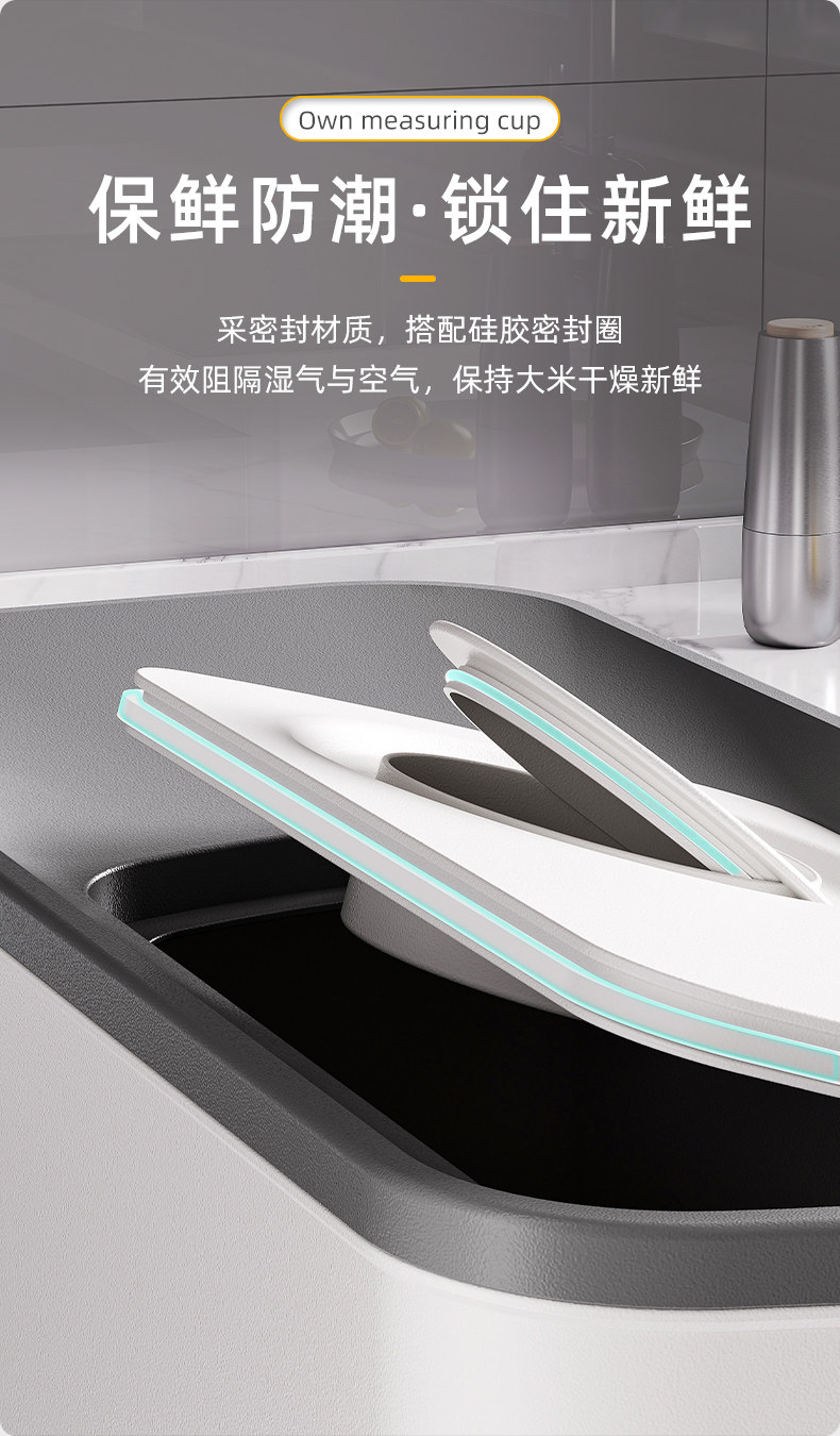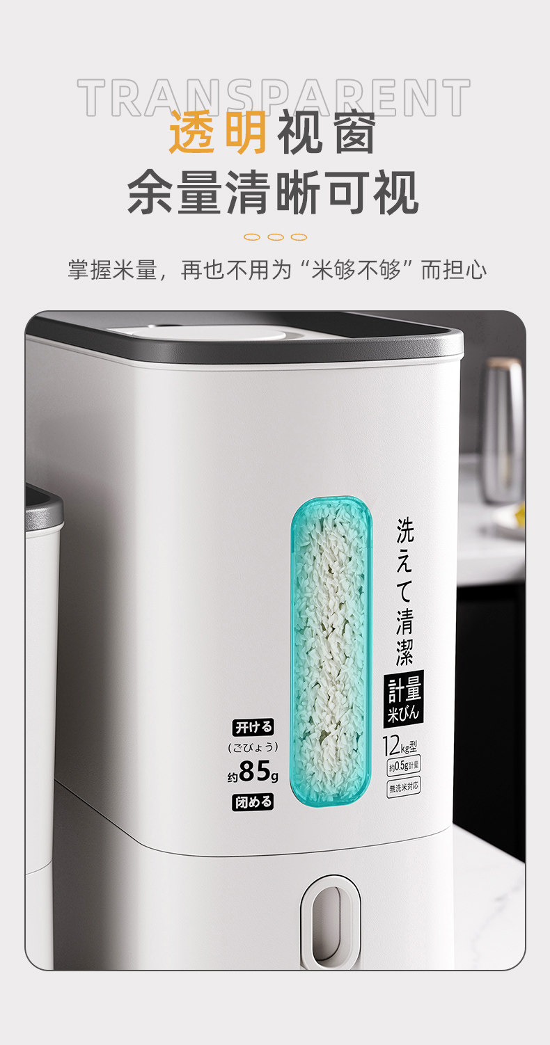Japanese Imported Measuring Rice Container for Home Use, 2025 New Model Rice Storage Container, Quantitative Rice Dispenser, Press-Type Rice Bin