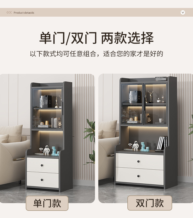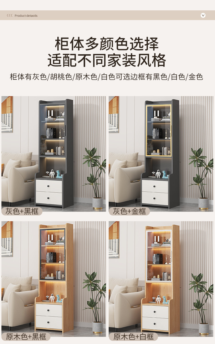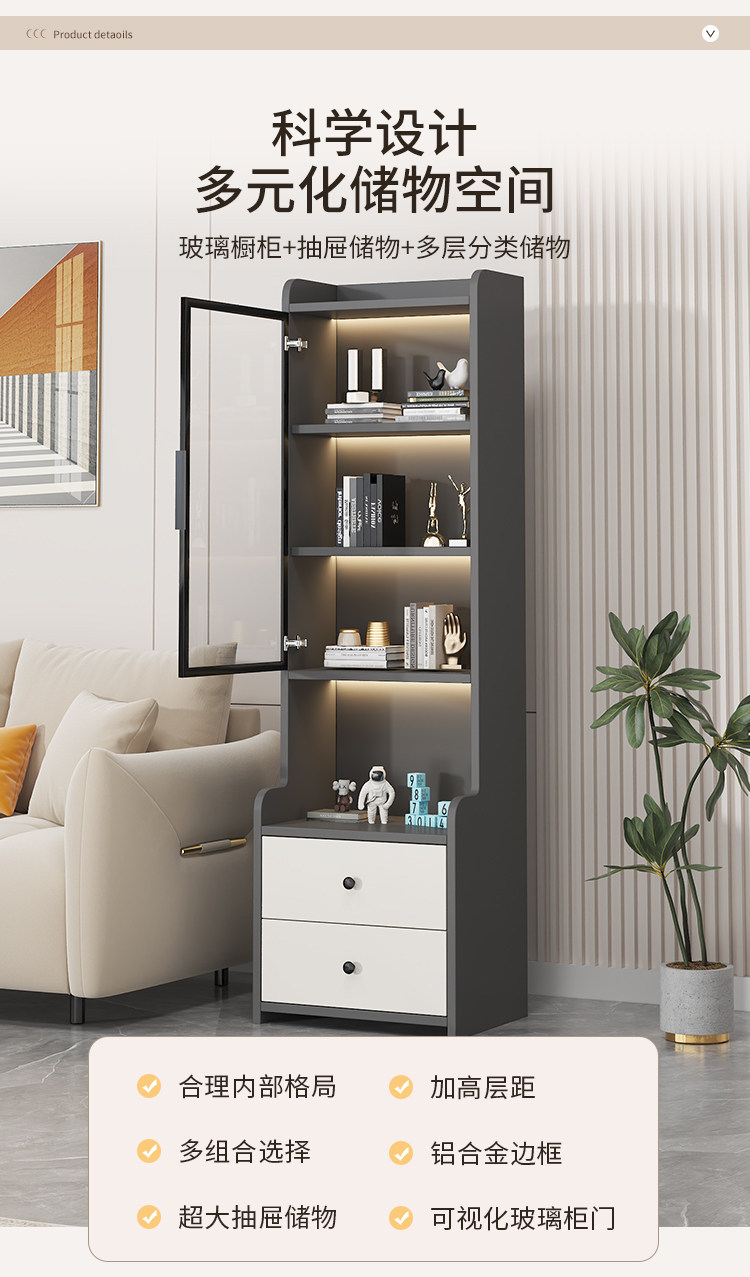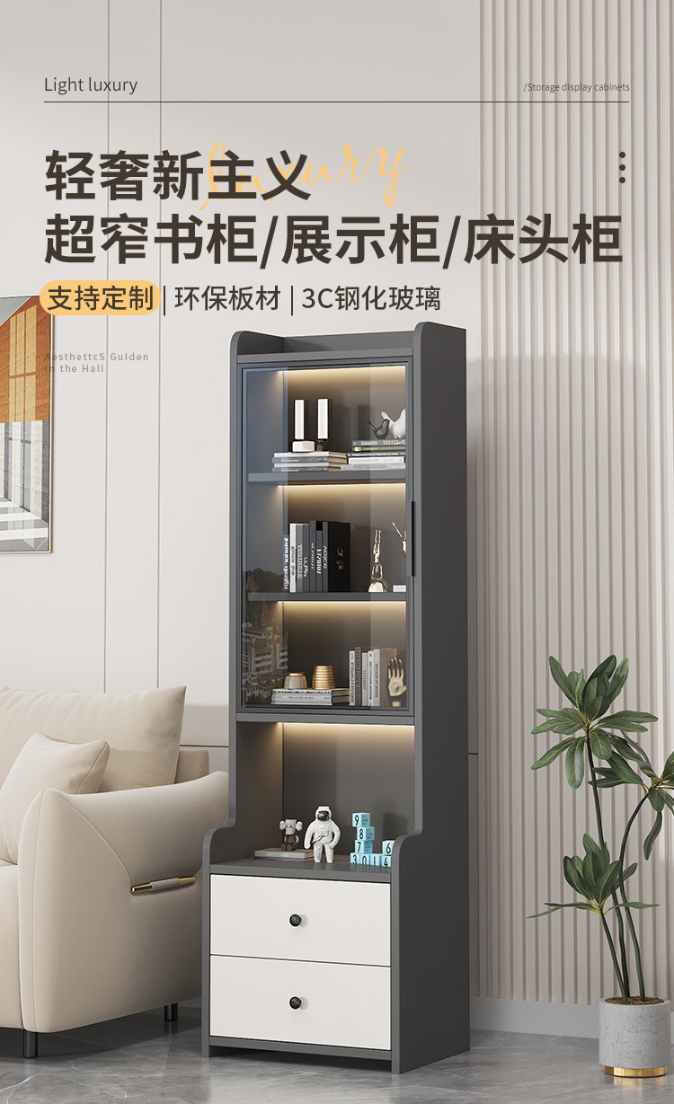 Glass Door Bookcase Display Cabinet Tv Cabinet Side Cabinet Storage Sideboard Wine Cabinet Wall Gap Living Room Bedside Narrow Cabinet