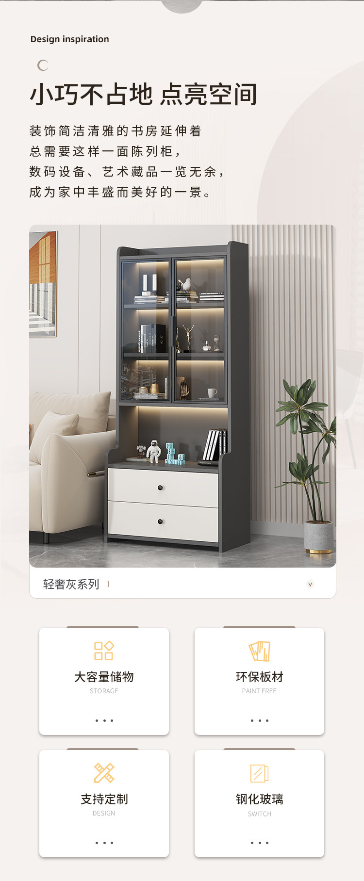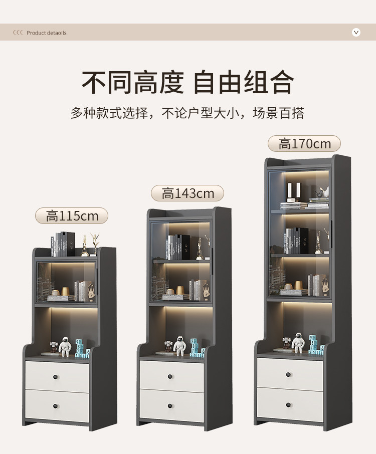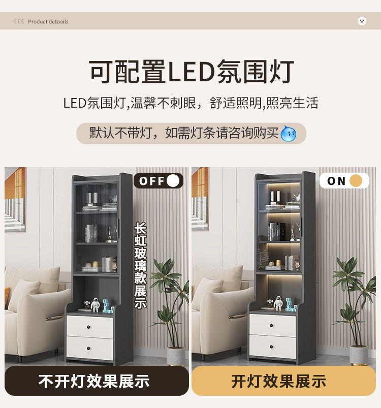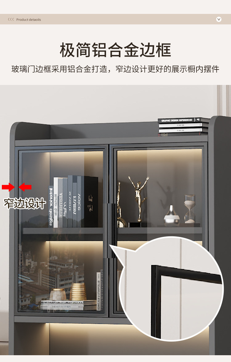 Glass Door Bookcase Display Cabinet Tv Cabinet Side Cabinet Storage Sideboard Wine Cabinet Wall Gap Living Room Bedside Narrow Cabinet